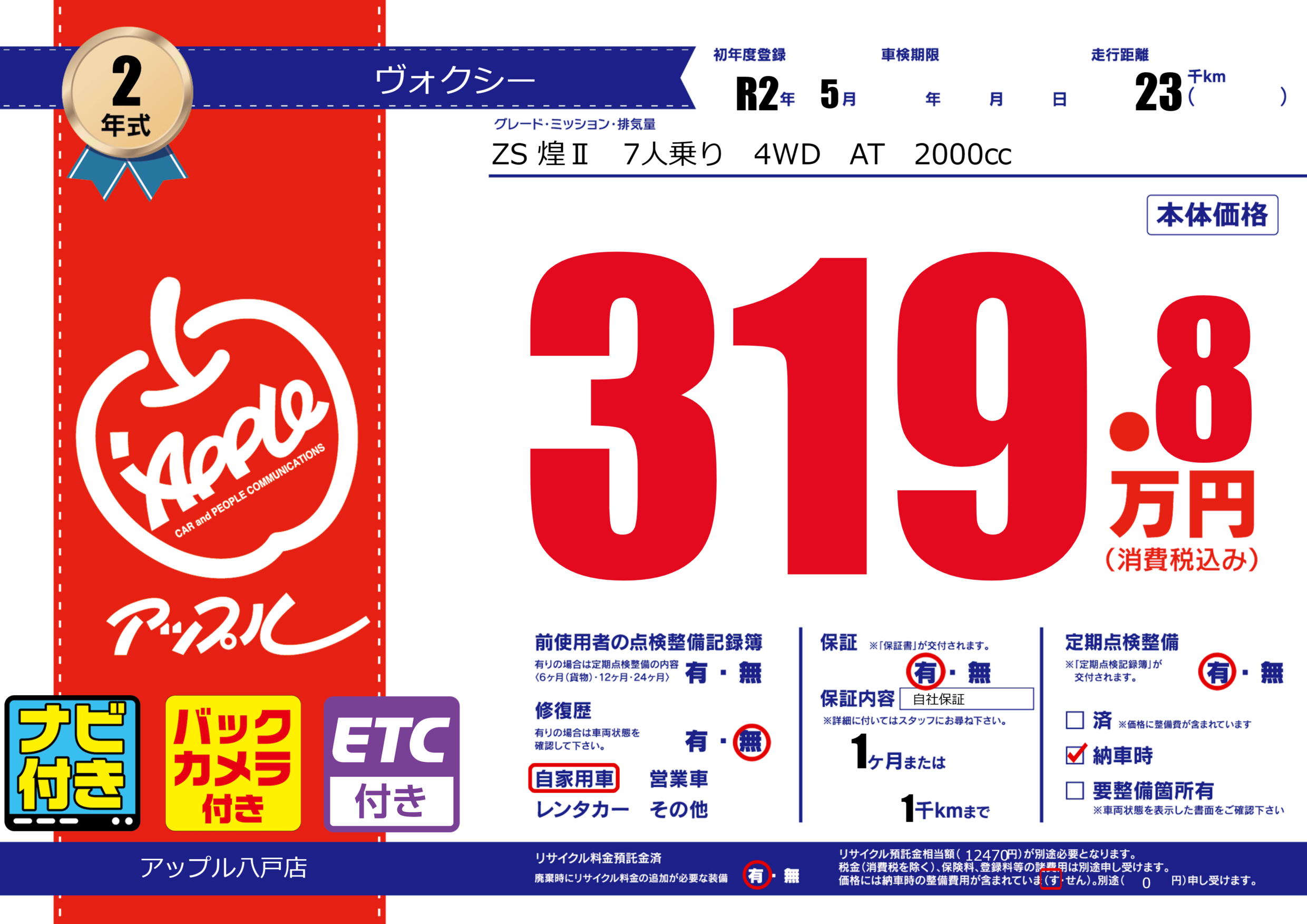 | 走行キロ | 2.3万km | 初年度登録 | R2年5月 |