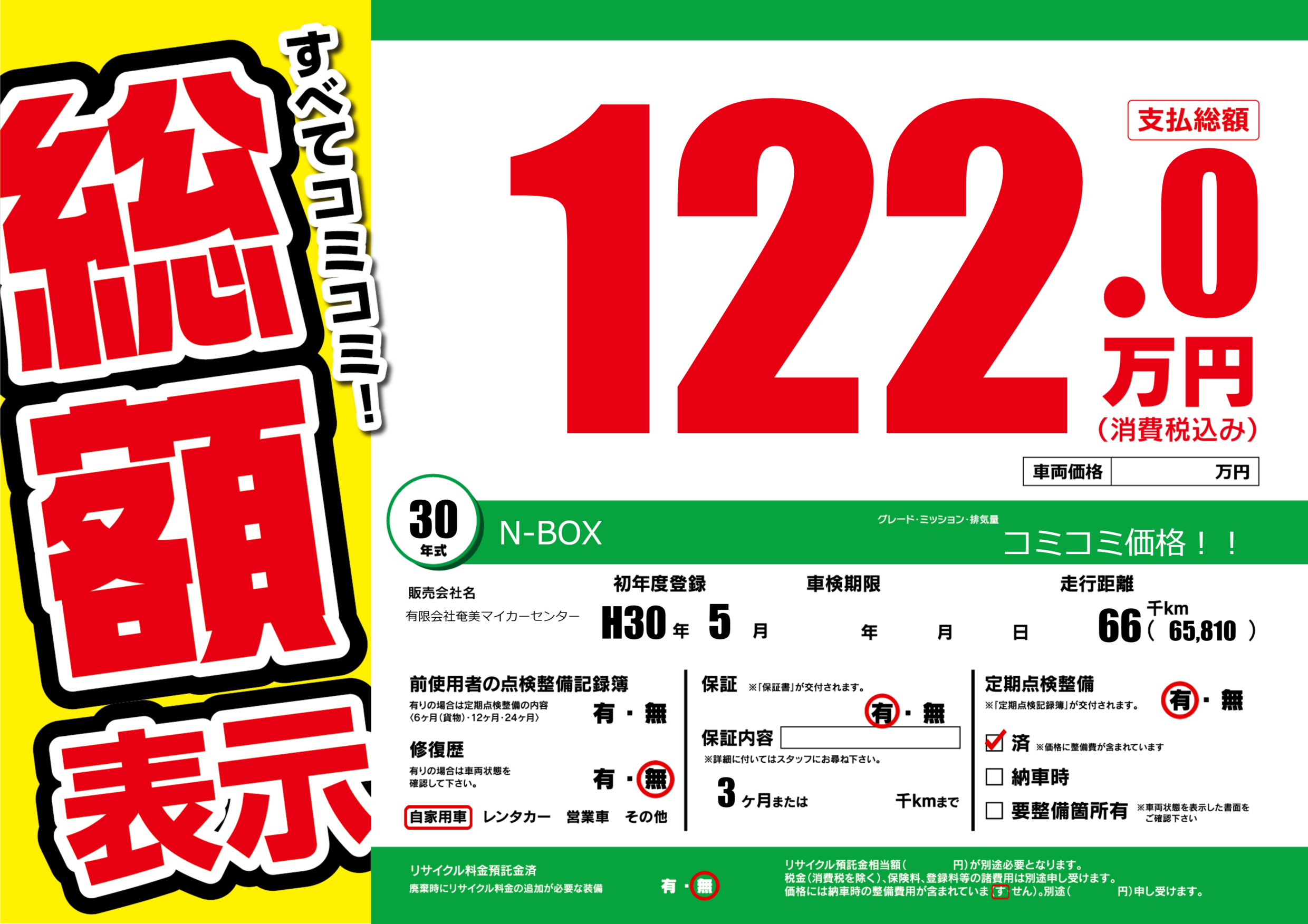 | 定期点検整備 | 定期点検整備あり 定期点検整備済み | ||