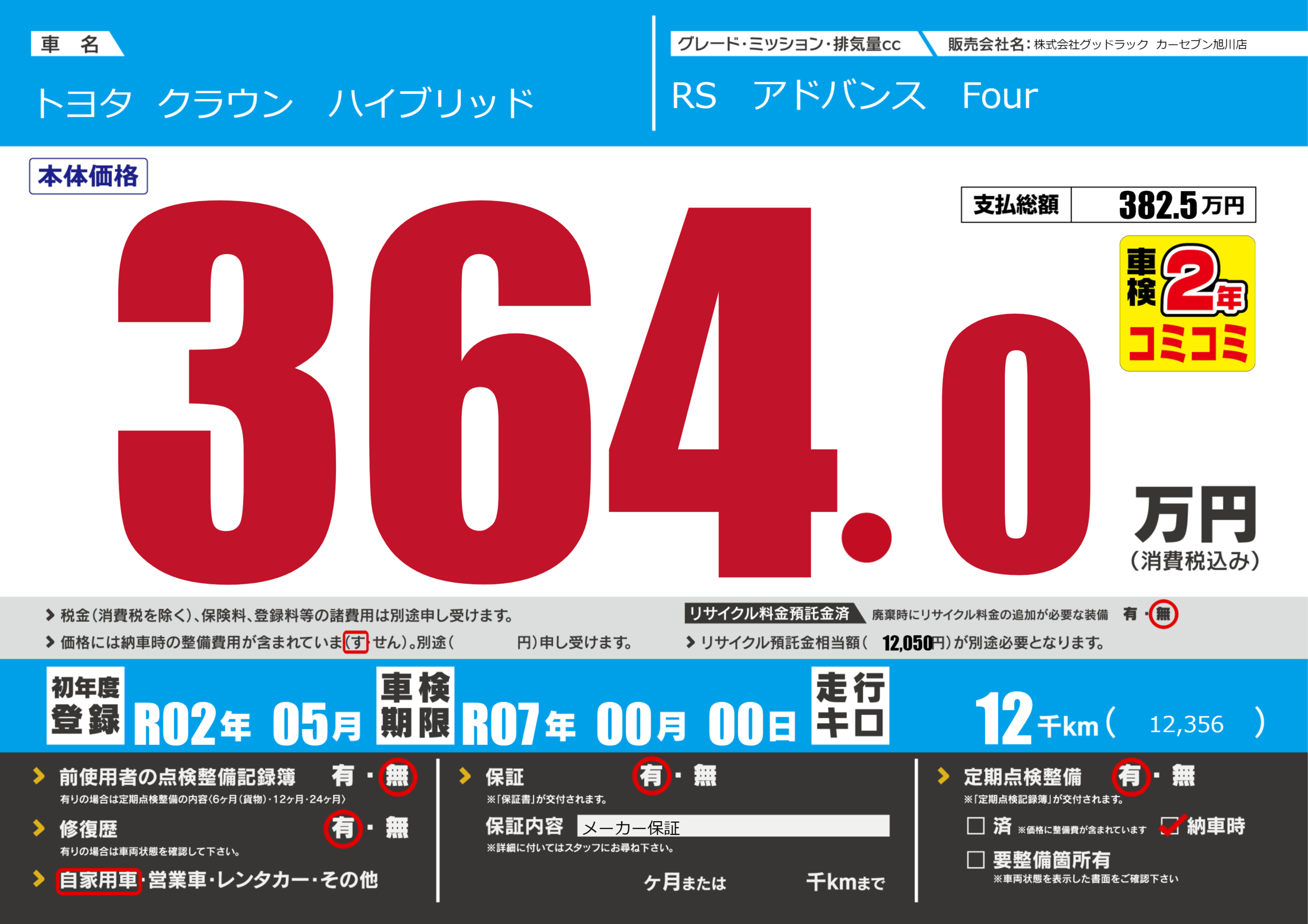 | 車名 | トヨタ クラウン ハイブリッド | グレード ミッション 排気量 |