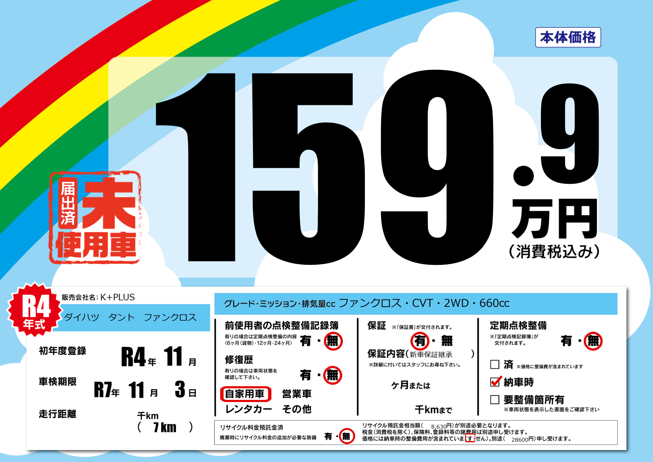 | 定期点検整備 | 定期点検整備なし 納車時あり | ||