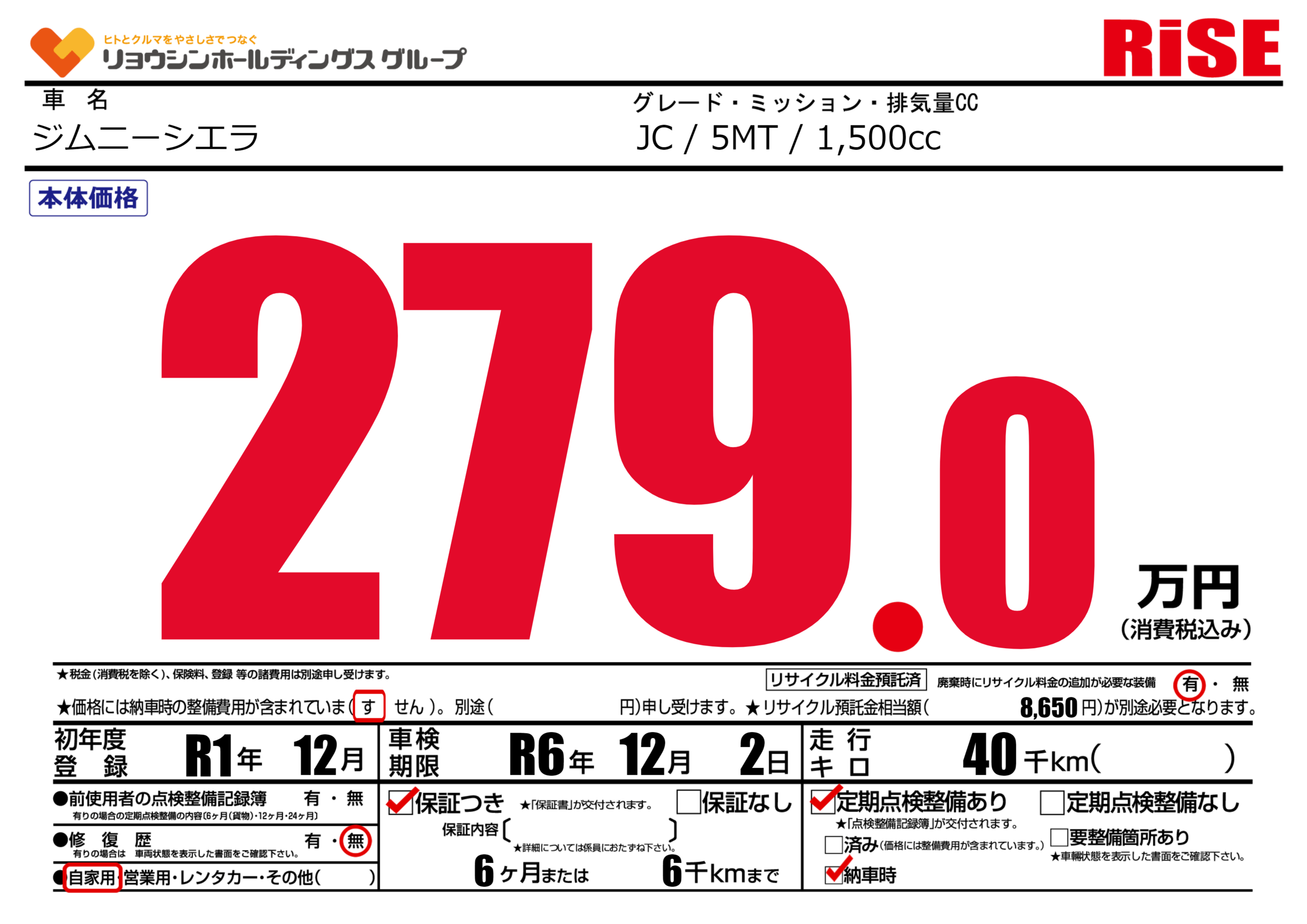 保証付き 保証内容(---) 6ヶ月または(6)千kmまで |