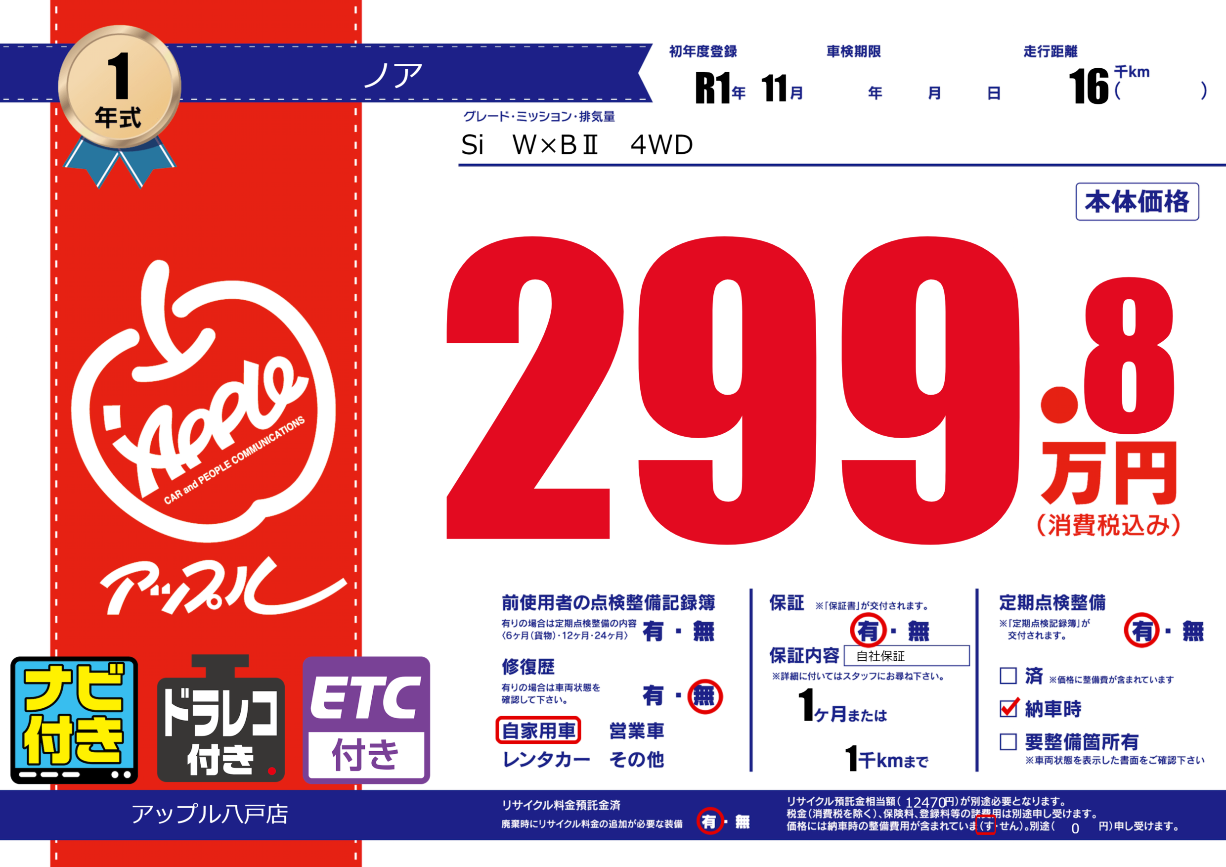 保証付き 保証内容( 自社保証) 1ヶ月または1千km |
