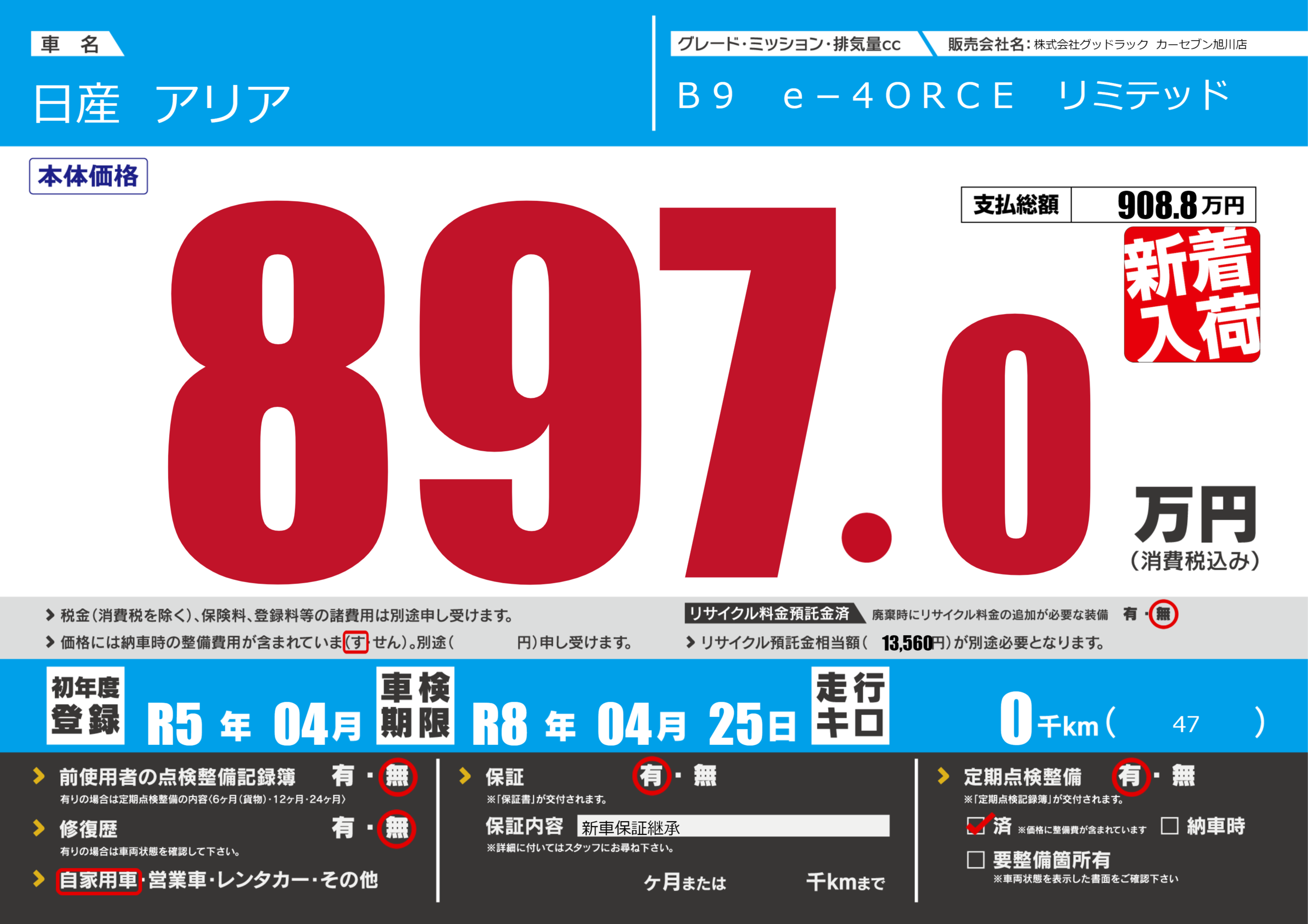 | 定期点検整備 | 定期点検整備あり 定期点検整備済み | ||