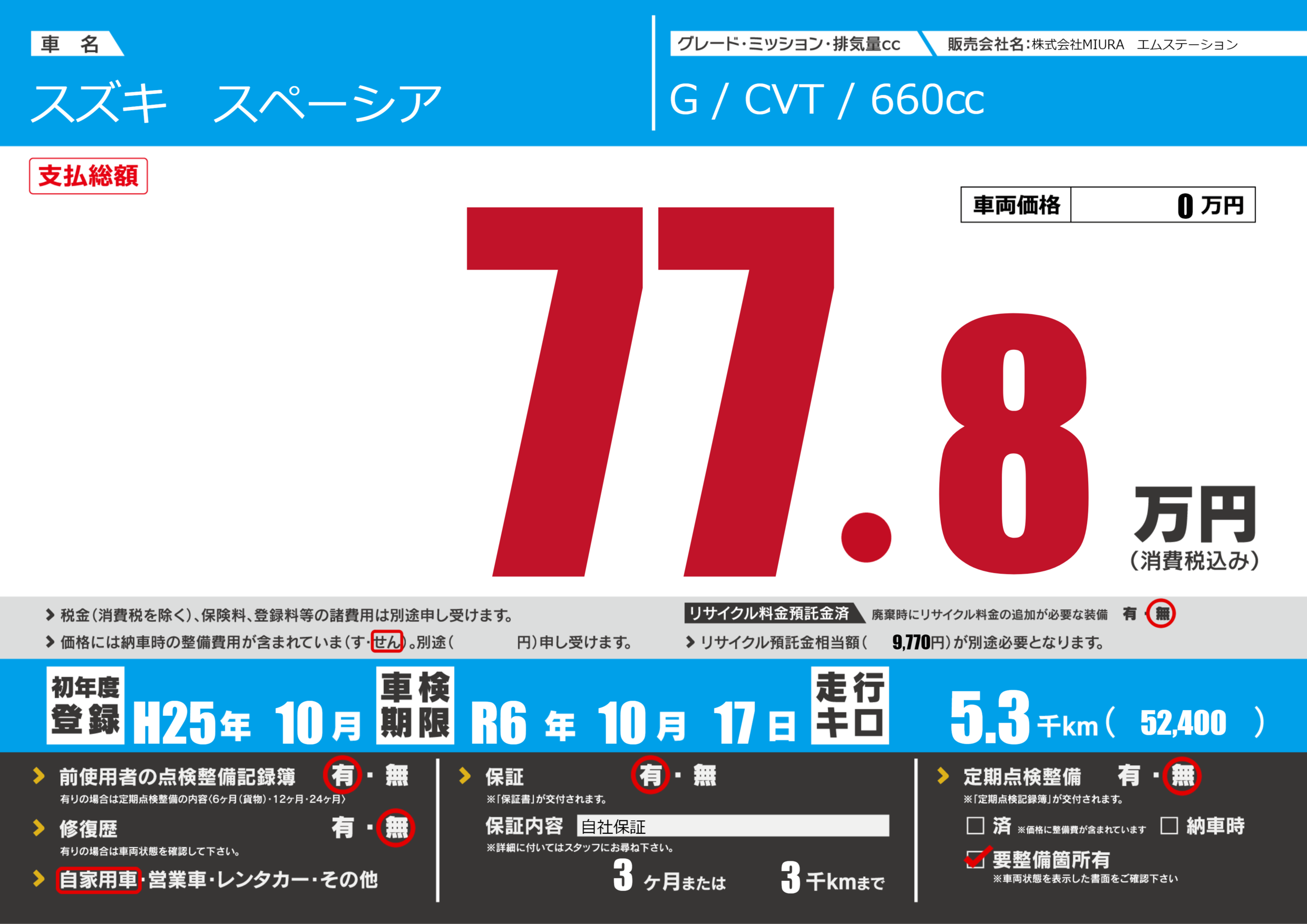 なし | 車検制限 | R6年10月17月 |