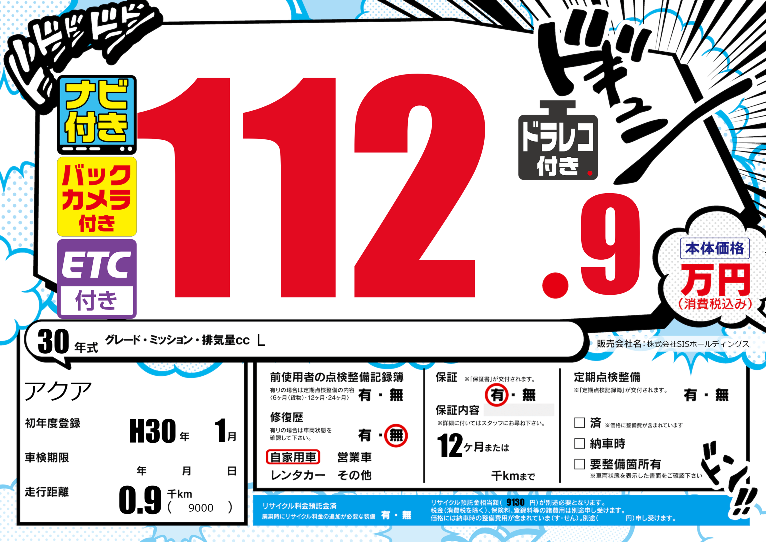 | 走行キロ | - | 初年度登録 | H30年1月 |