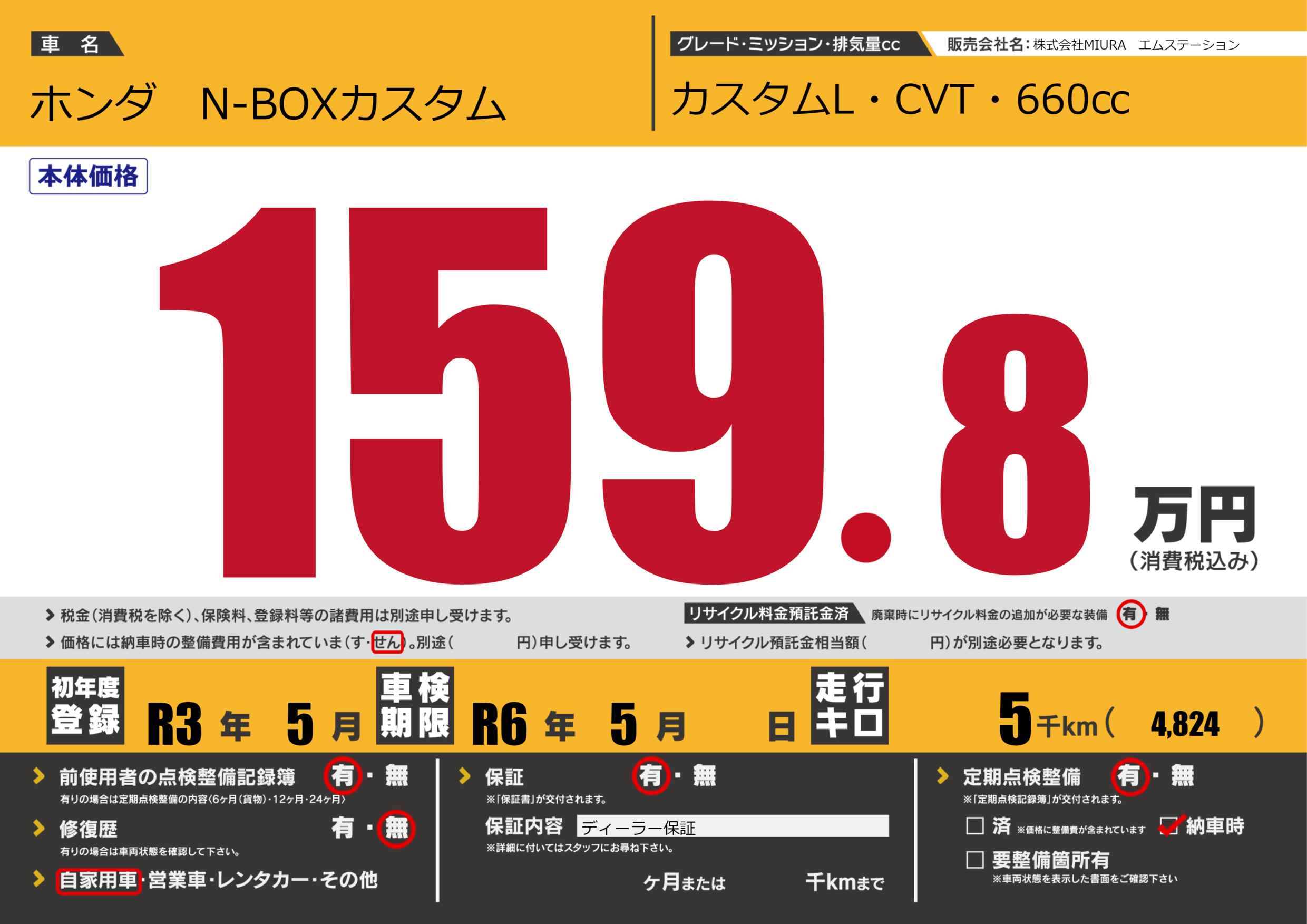 なし | 車検制限 | R6年5月---月 |