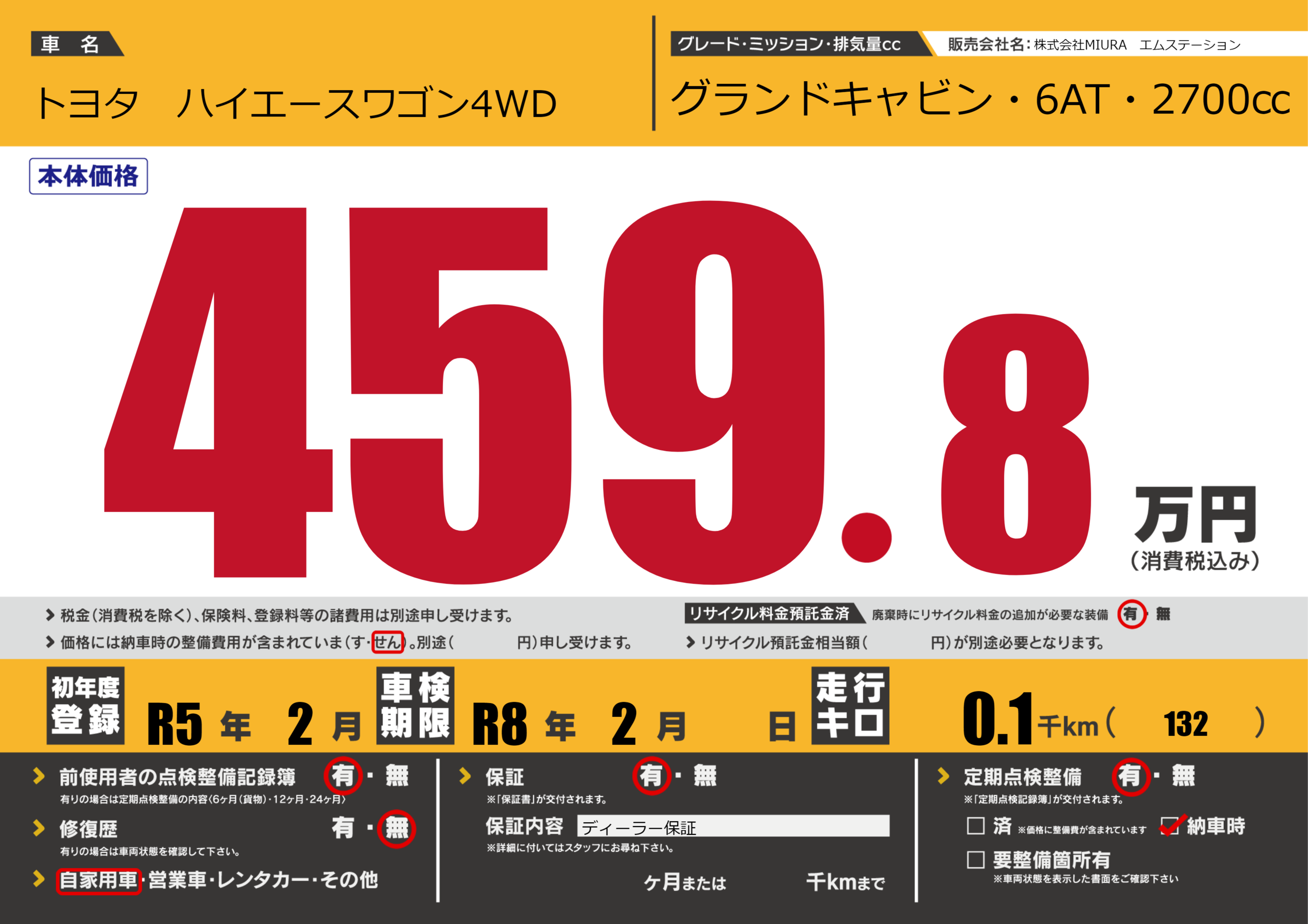 なし | 車検制限 | R8年2月---月 |