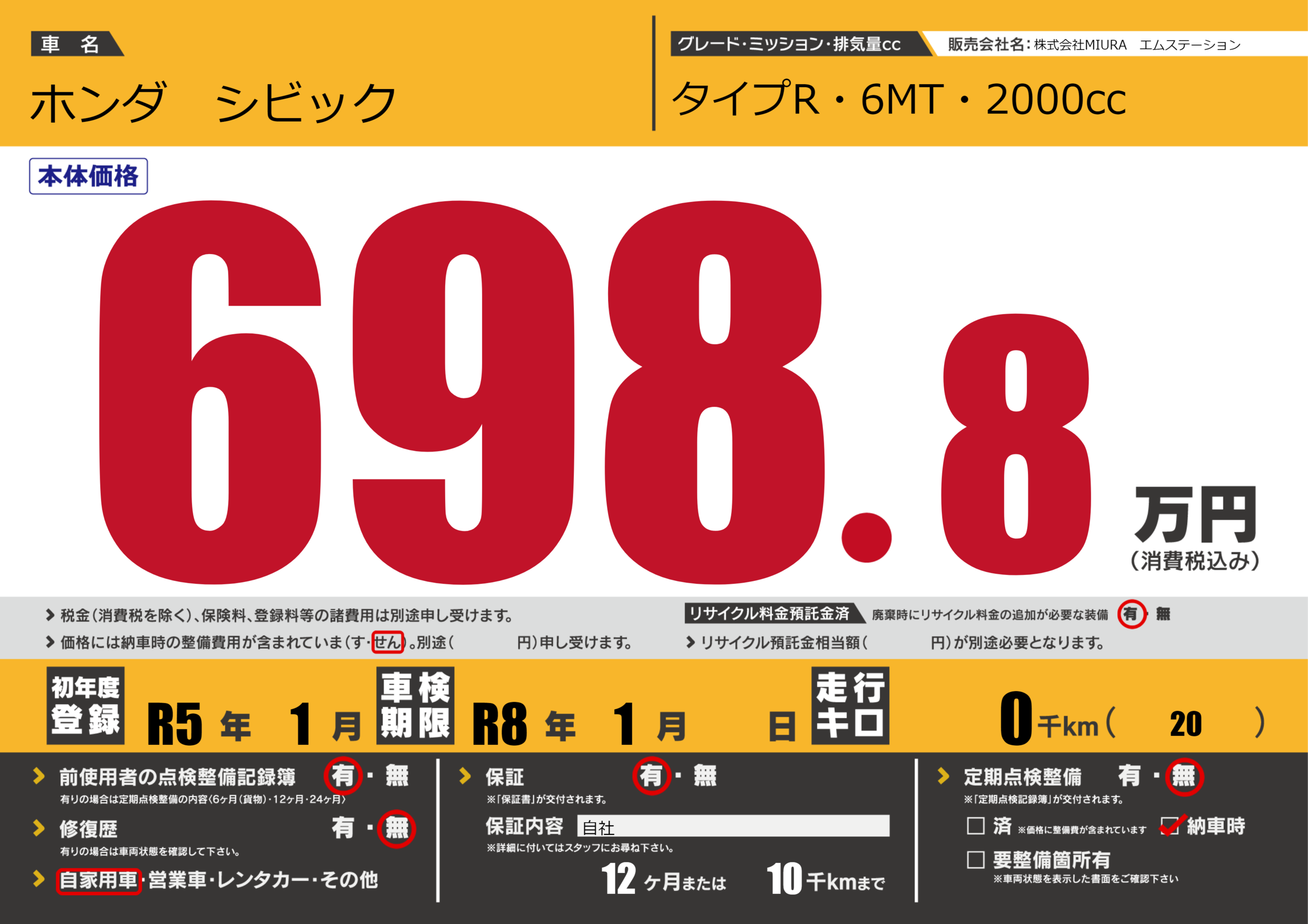 保証付き 保証内容(自社) 12ヶ月または(10)千kmまで |