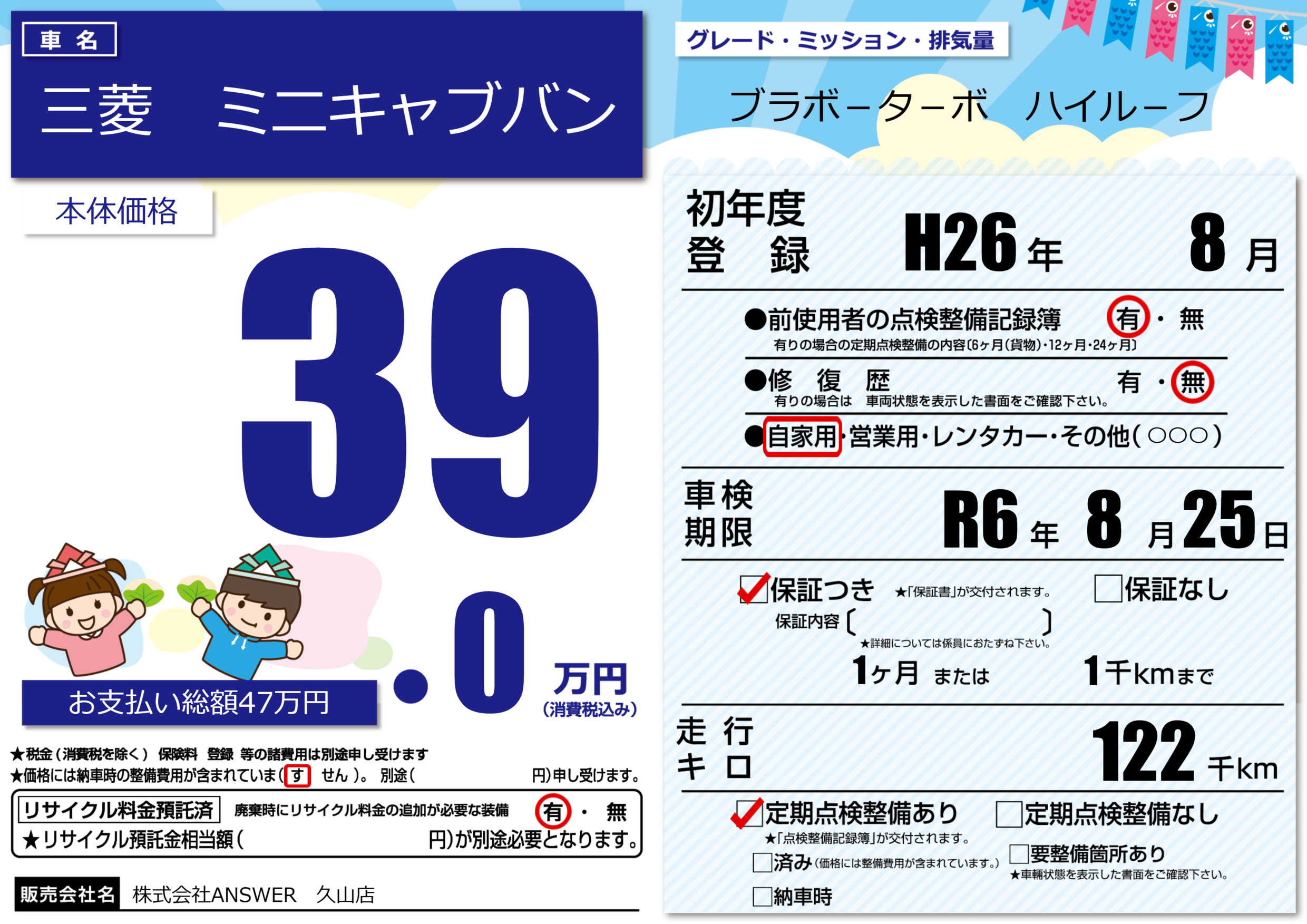 あり | 車検制限 | R6年8月25月 |
