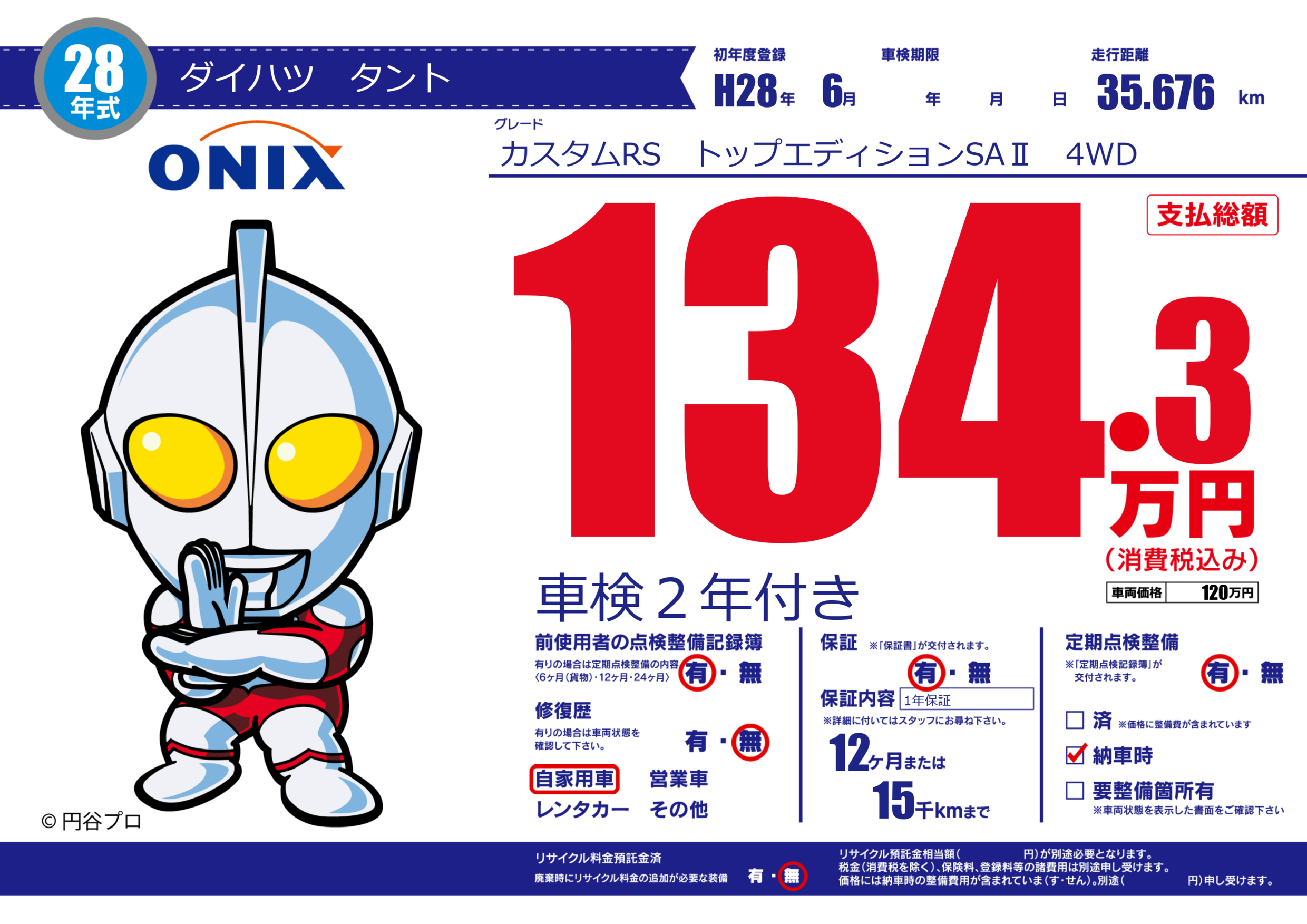 | 走行キロ | 3.5万km | 初年度登録 | H28年6月 |