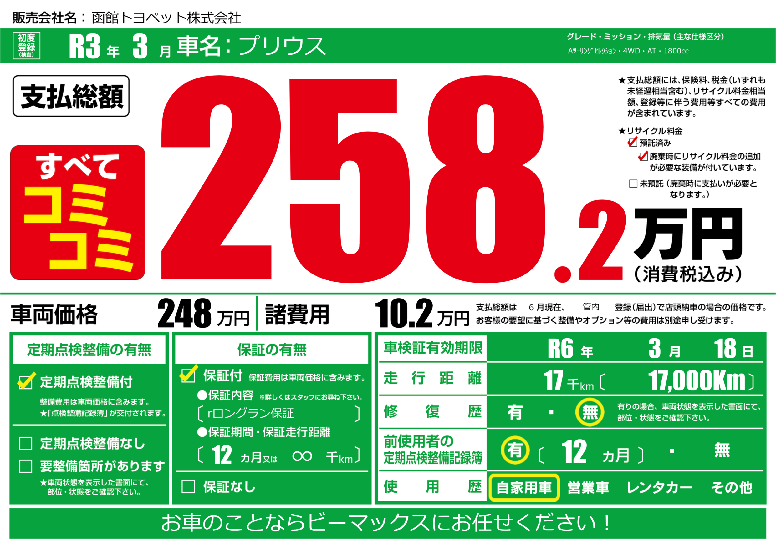 | 車検制限 | R6年 3月 18日 | ||