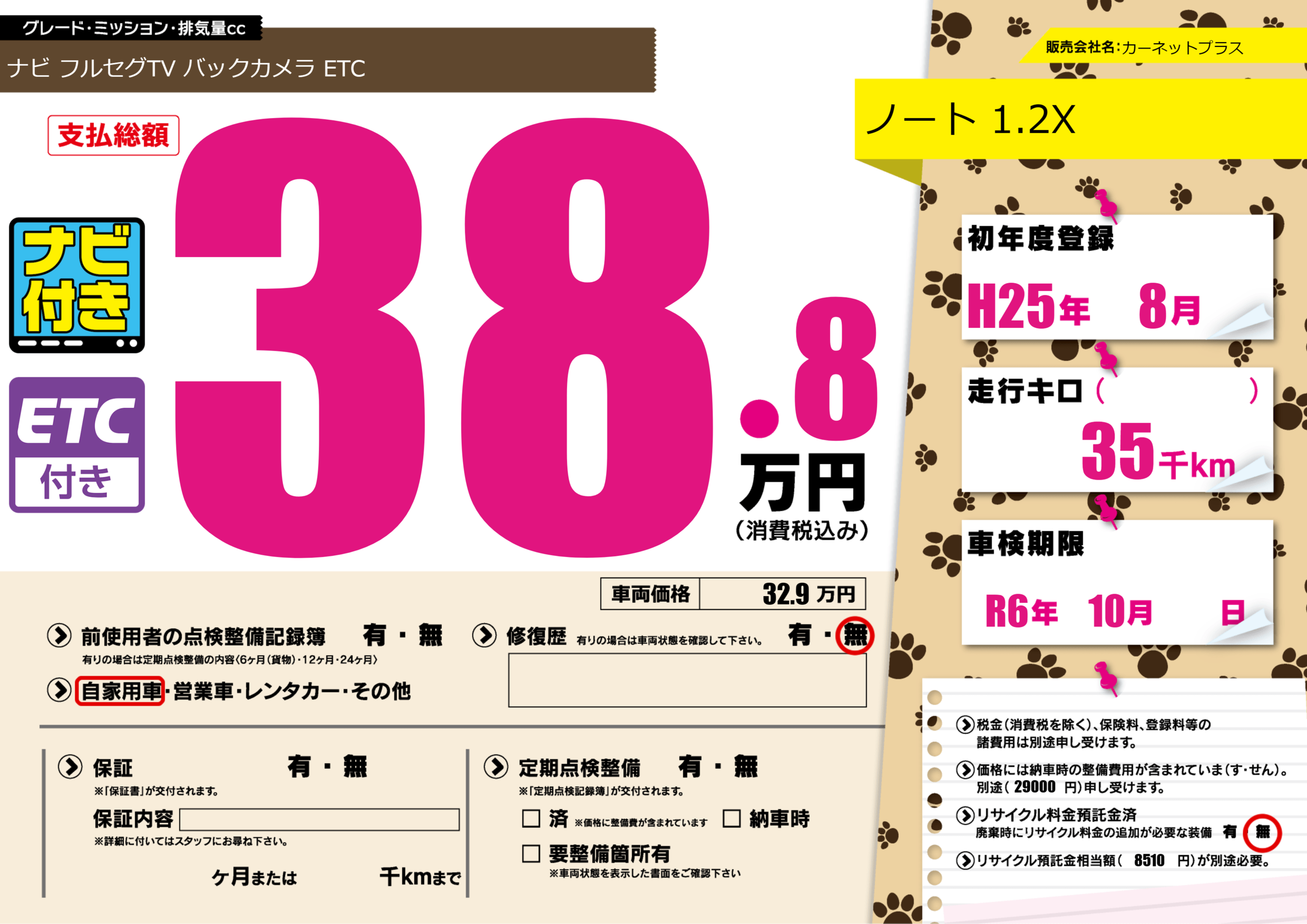 | 車名 | ノート 1.2X | グレード ミッション 排気量 |