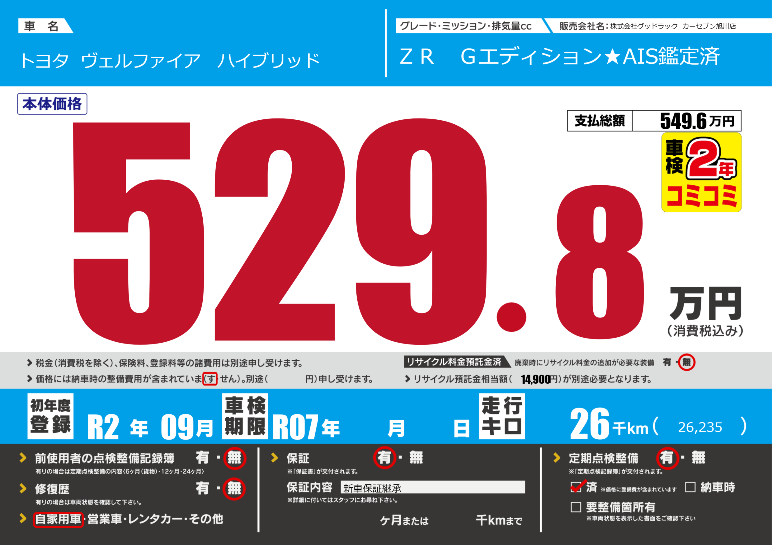 | 定期点検整備 | 定期点検整備あり 定期点検整備済み | ||