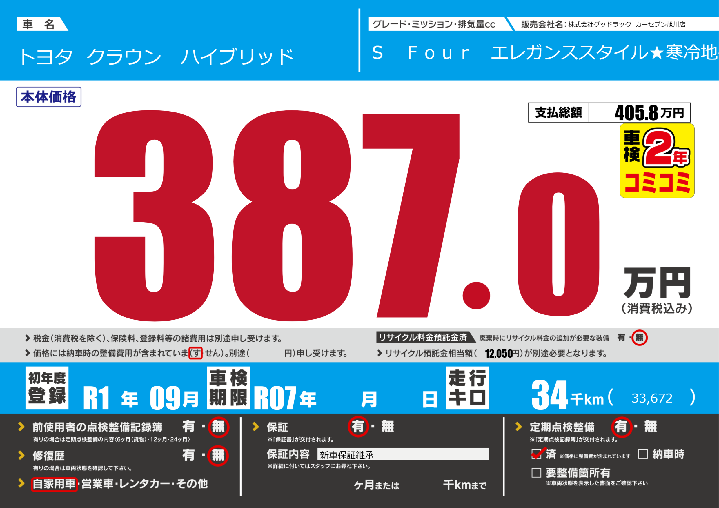 | 定期点検整備 | 定期点検整備あり 定期点検整備済み | ||