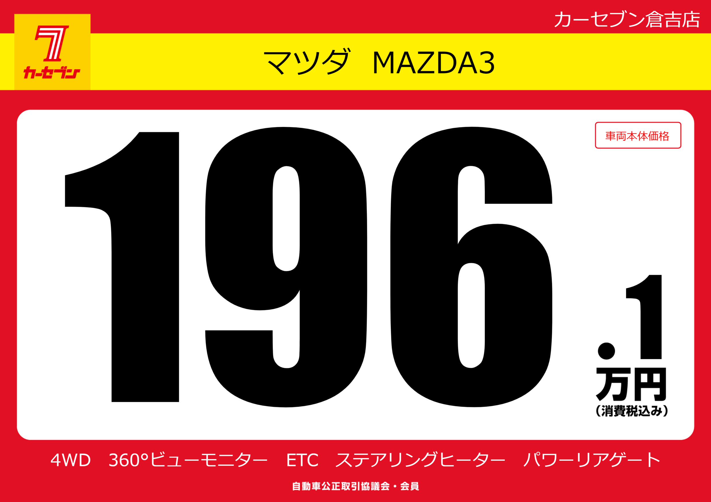 | 車名 | マツダ MAZDA3 | グレード ミッション 排気量 |