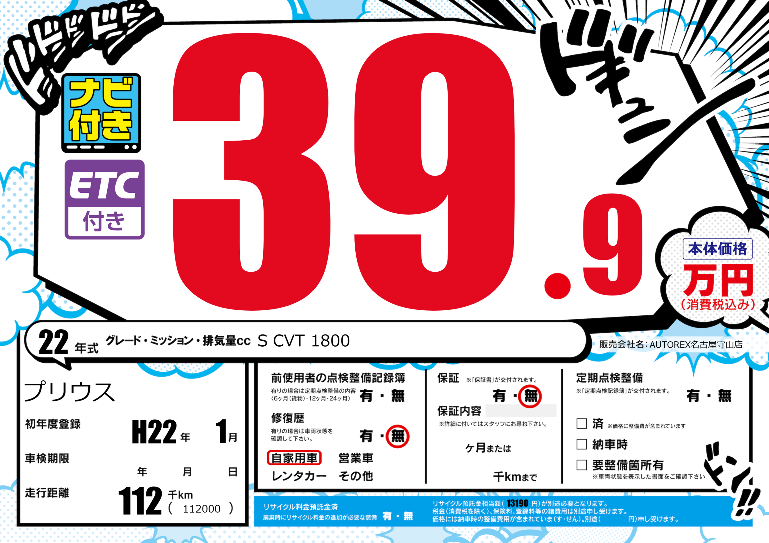 | 車名 | プリウス | グレード ミッション 排気量 |