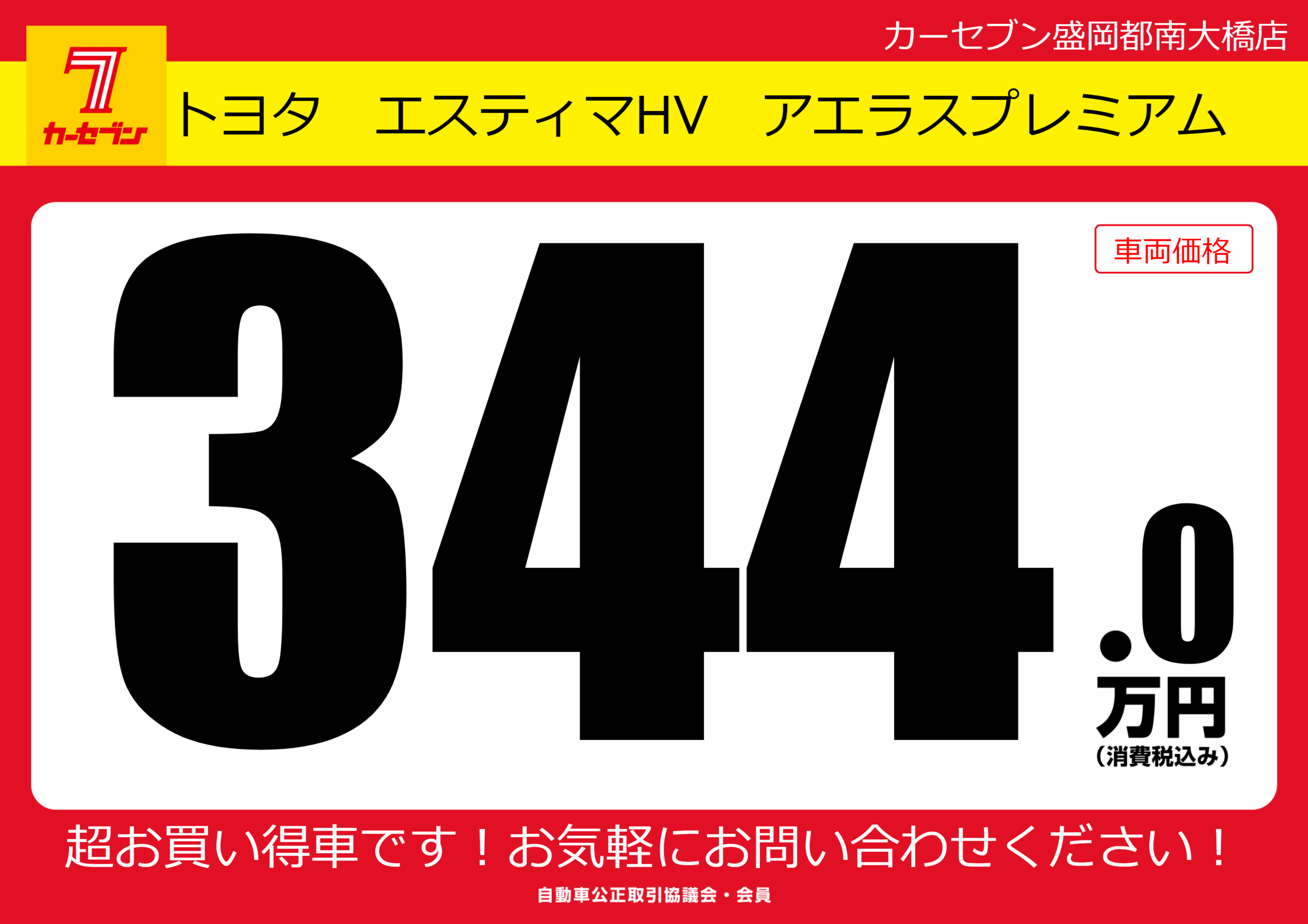 | 車名 | トヨタ エスティマHV アエラスプレミアム | グレード ミッション 排気量 |