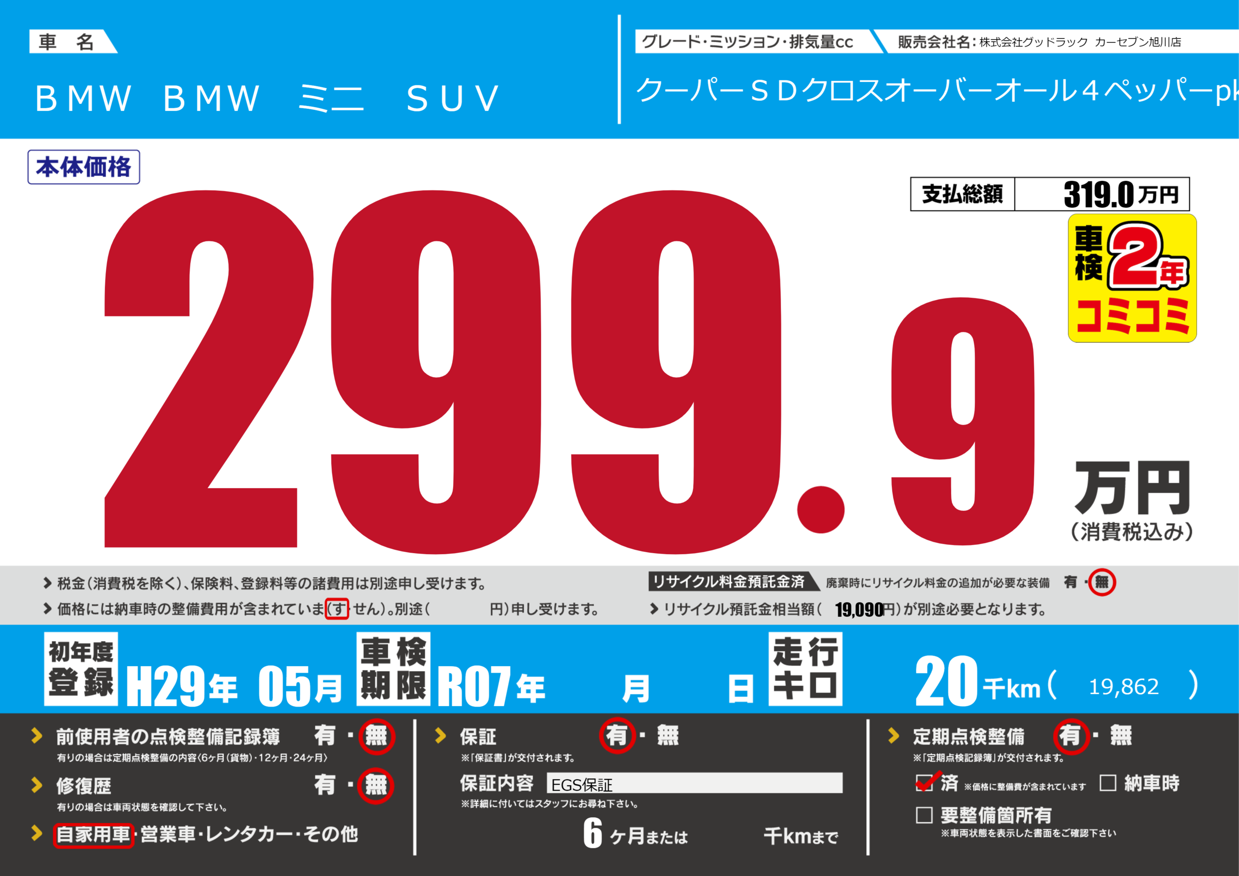 | 定期点検整備 | 定期点検整備あり 定期点検整備済み | ||