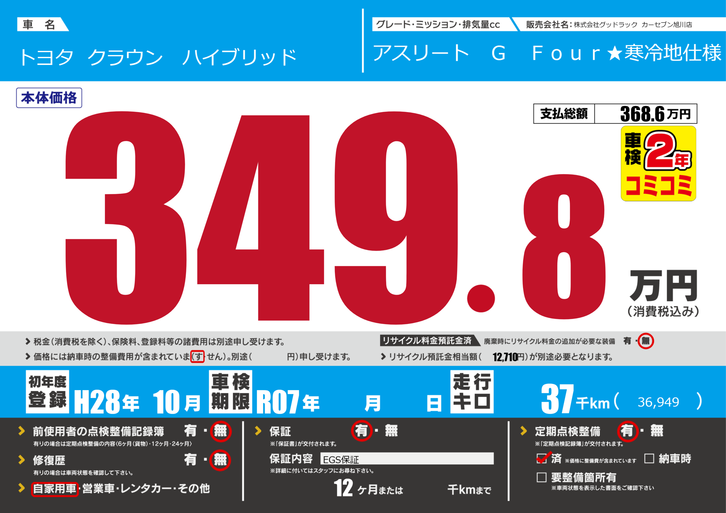 | 定期点検整備 | 定期点検整備あり 定期点検整備済み | ||