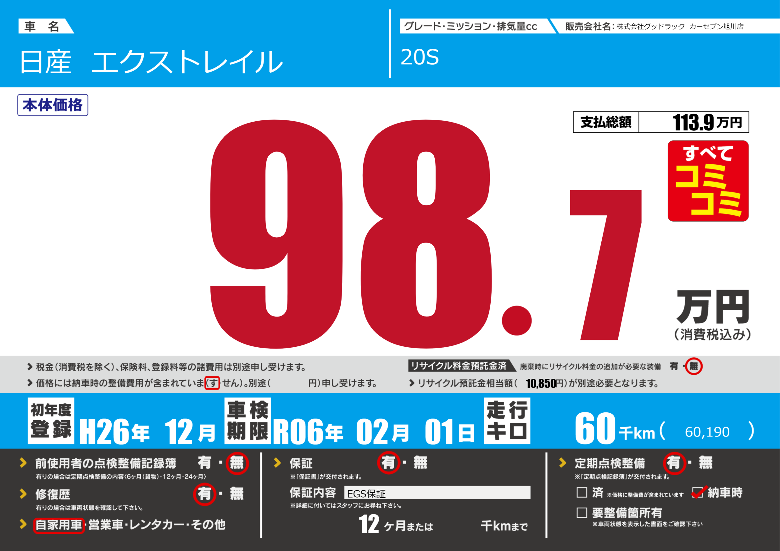 | 走行キロ | 6万km | ||