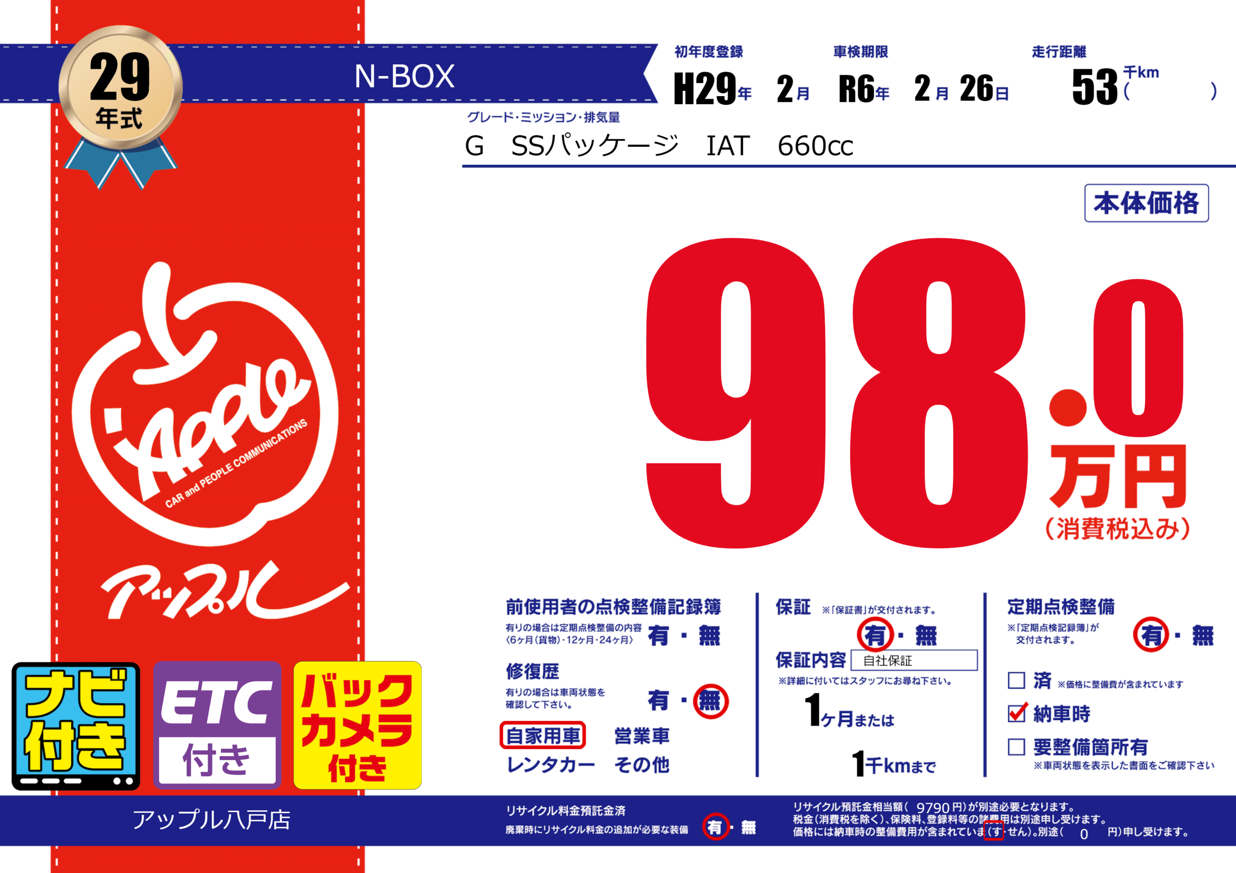 | 車名 | N-BOX | グレード ミッション 排気量 |