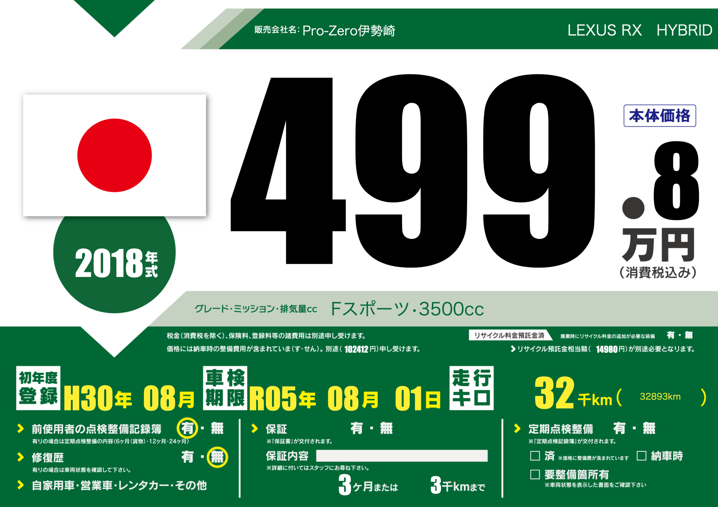 | 初年度登録 | H30年08月 | ||