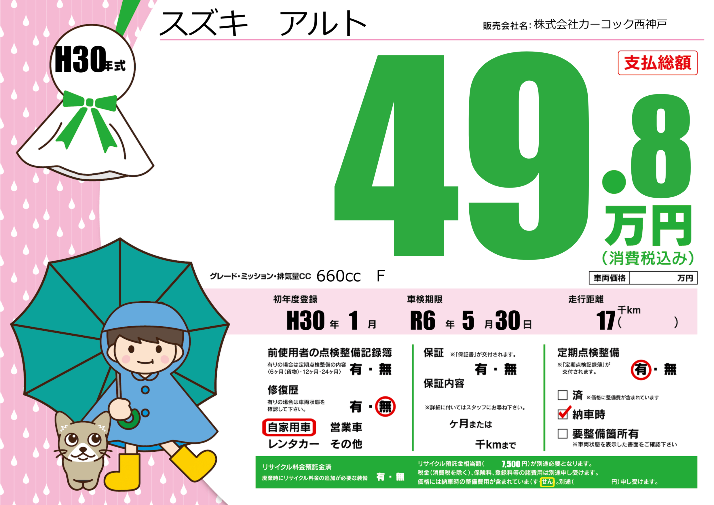 | 車名 | スズキ アルト | グレード ミッション 排気量 |