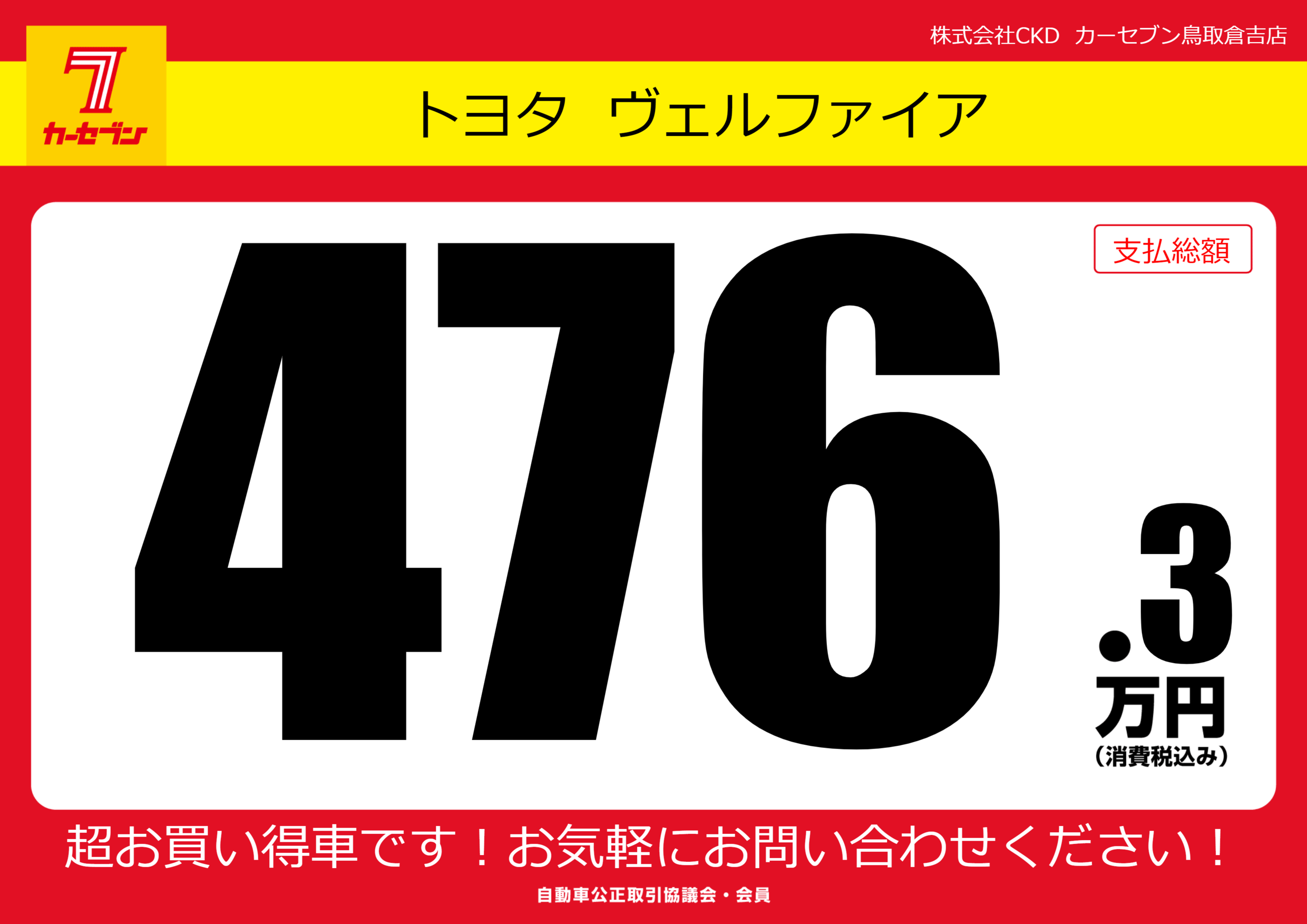 | 車名 | トヨタ ヴェルファイア | グレード ミッション 排気量 |