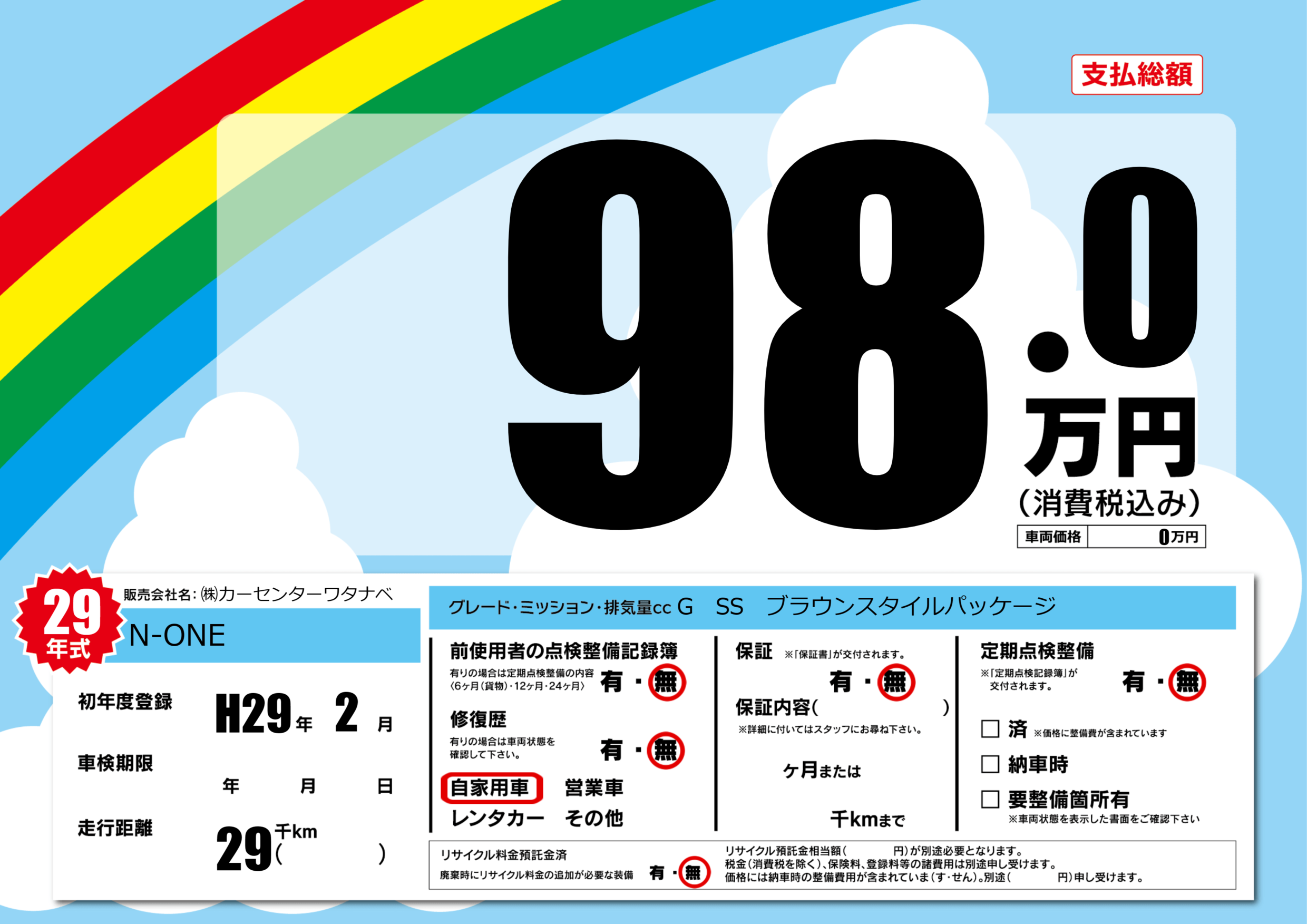 | 車名 | N-ONE | グレード ミッション 排気量 |