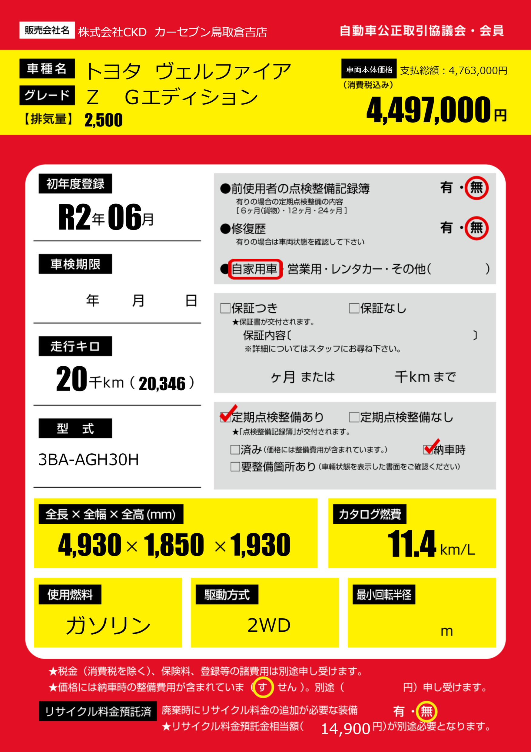 | 車名 | トヨタ ヴェルファイア | グレード ミッション 排気量 |