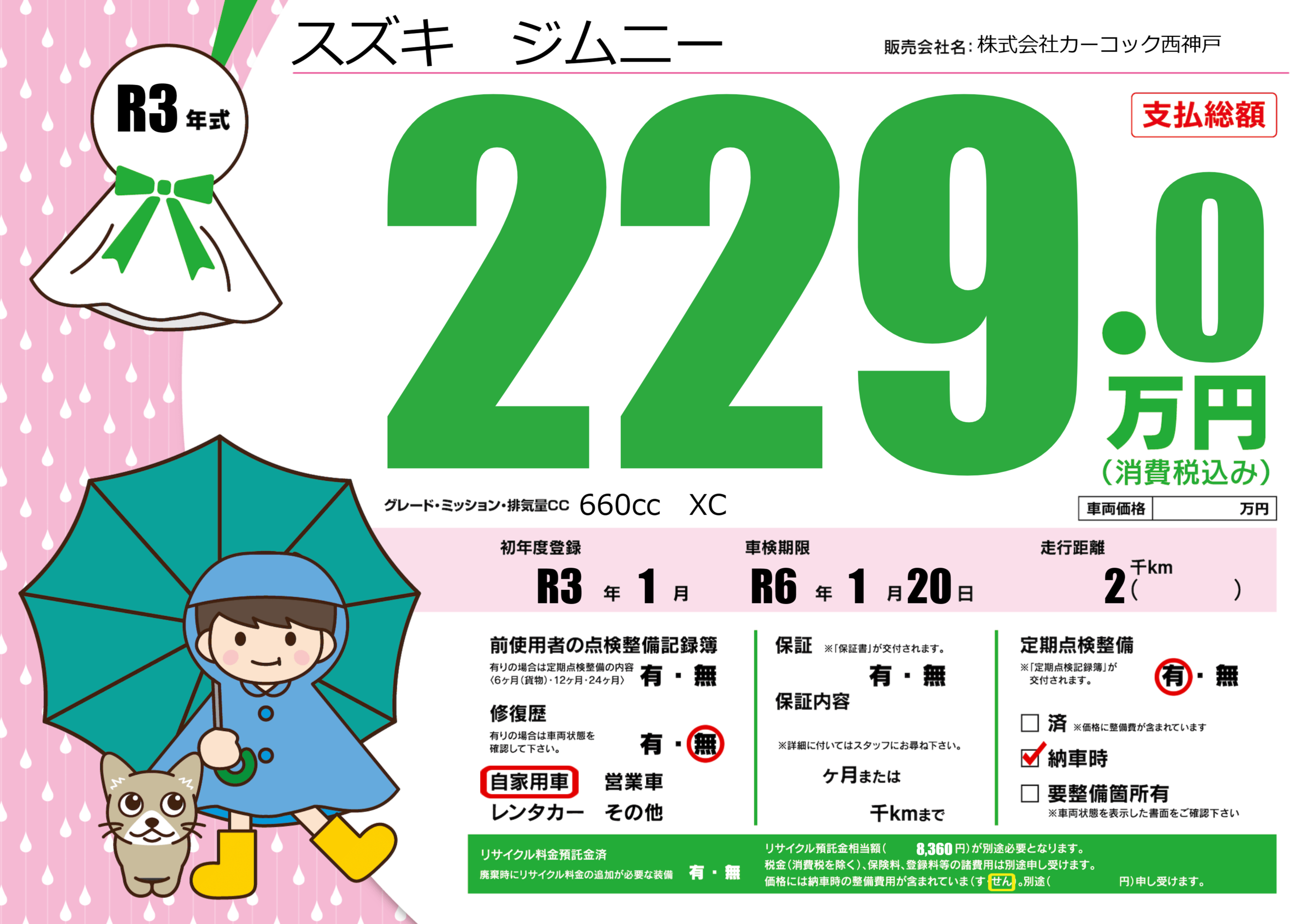 | 走行キロ | 0.2万km | 初年度登録 | R3年1月 |