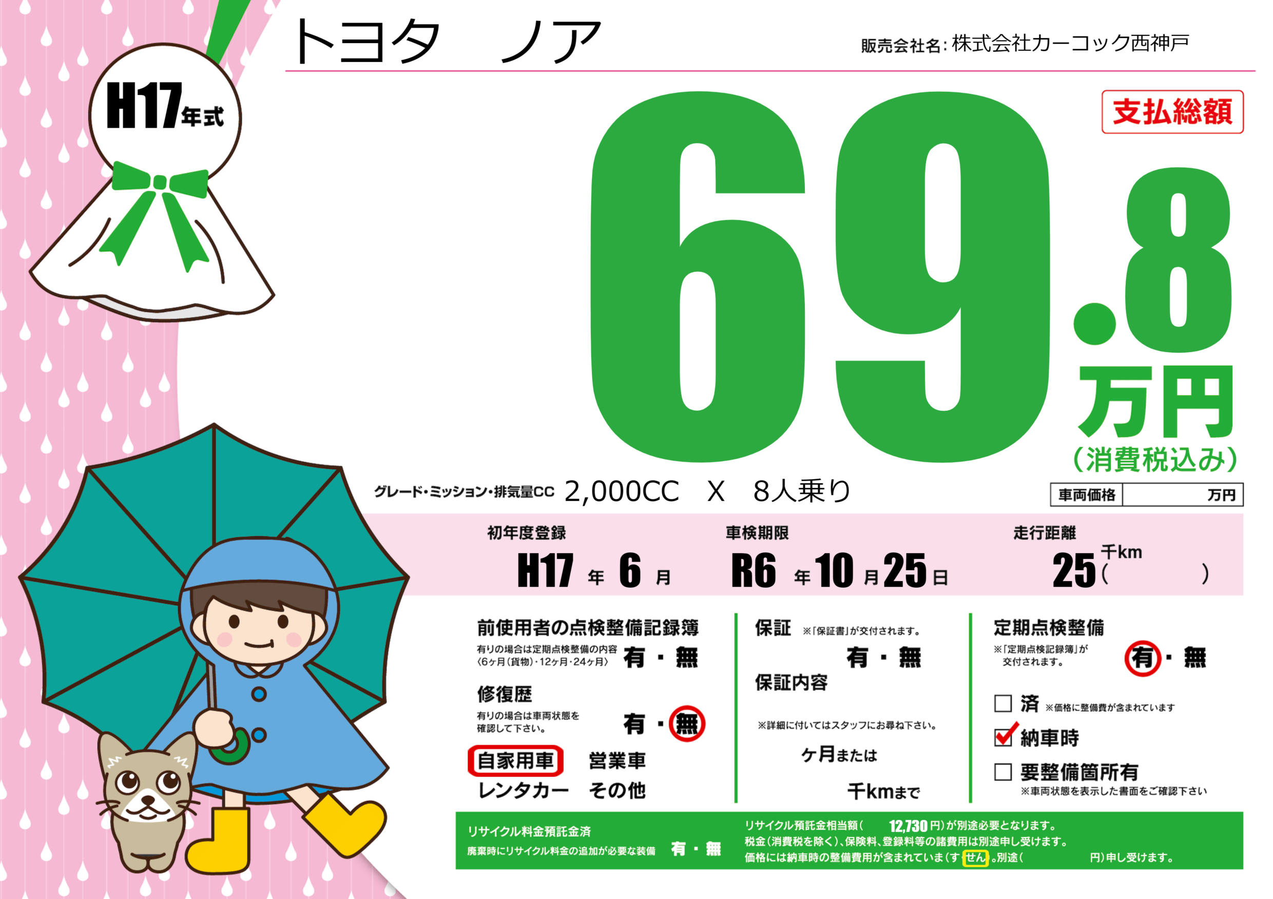 | 走行キロ | 2.5万km | 初年度登録 | H17年6月 |