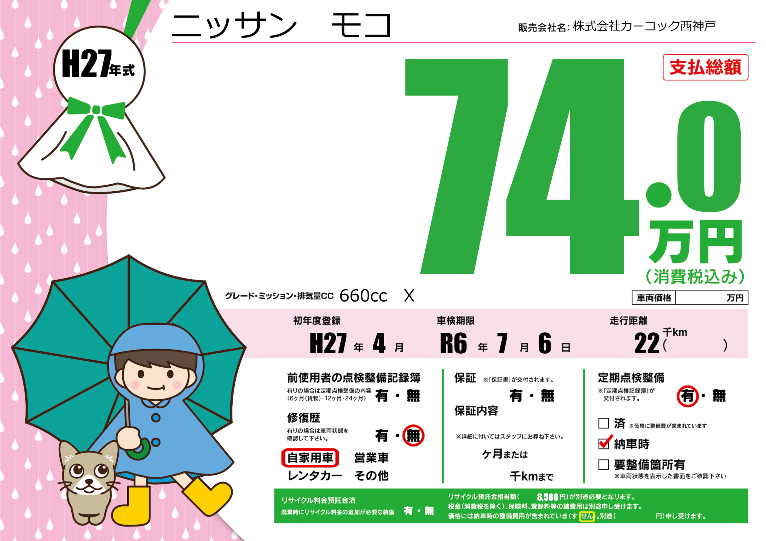 | 車名 | ニッサン モコ | グレード ミッション 排気量 |