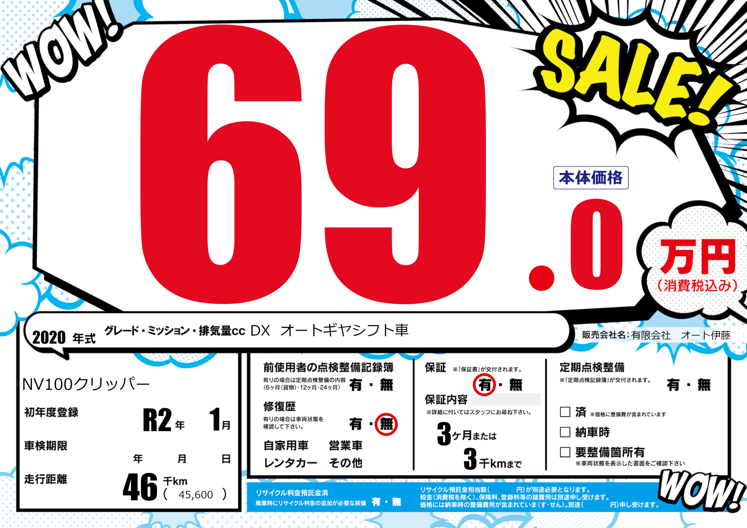 | 走行キロ | 4.6万km | 初年度登録 | R2年1月 |