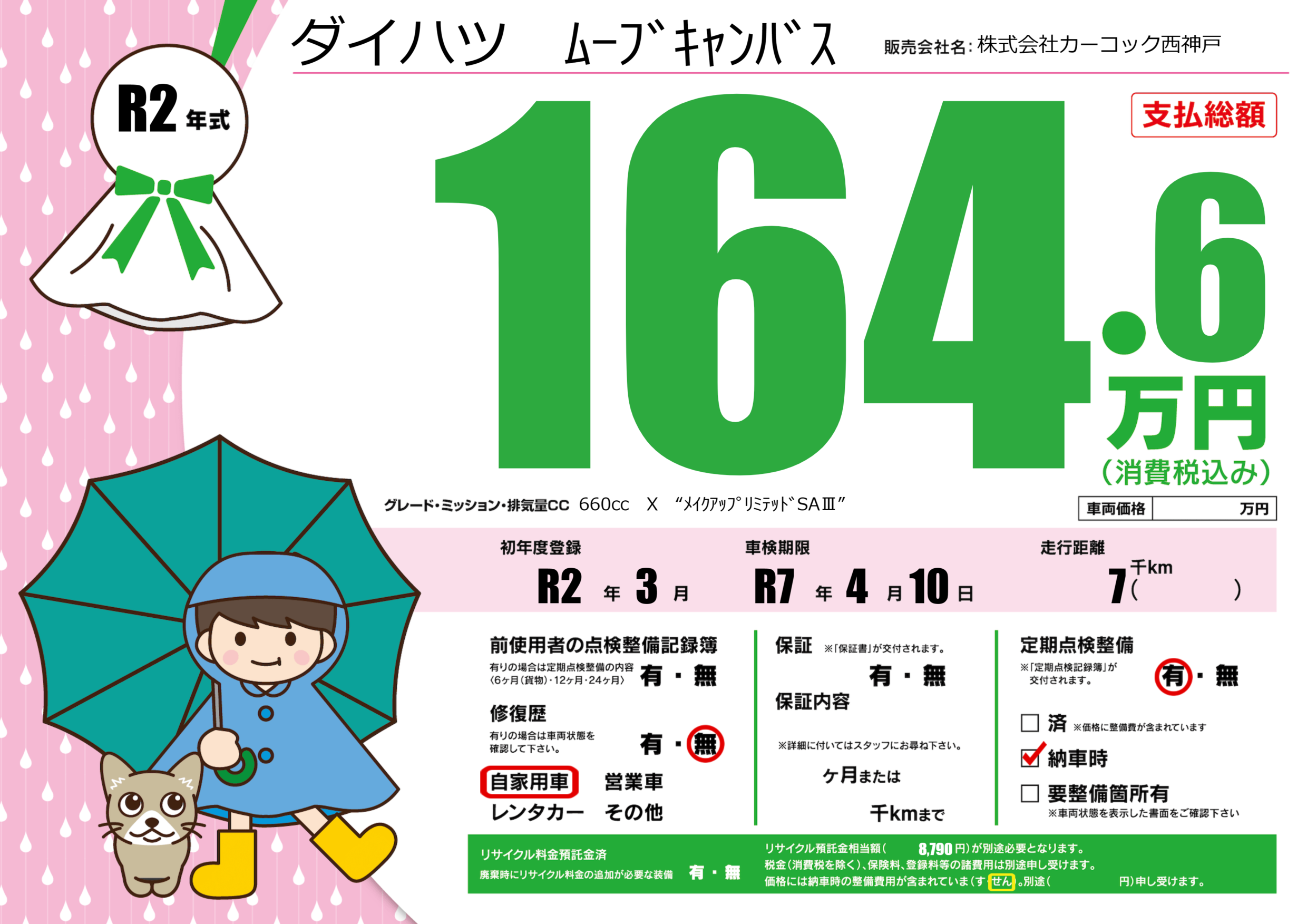 | 車検制限 | R7年 4月 10日 | ||