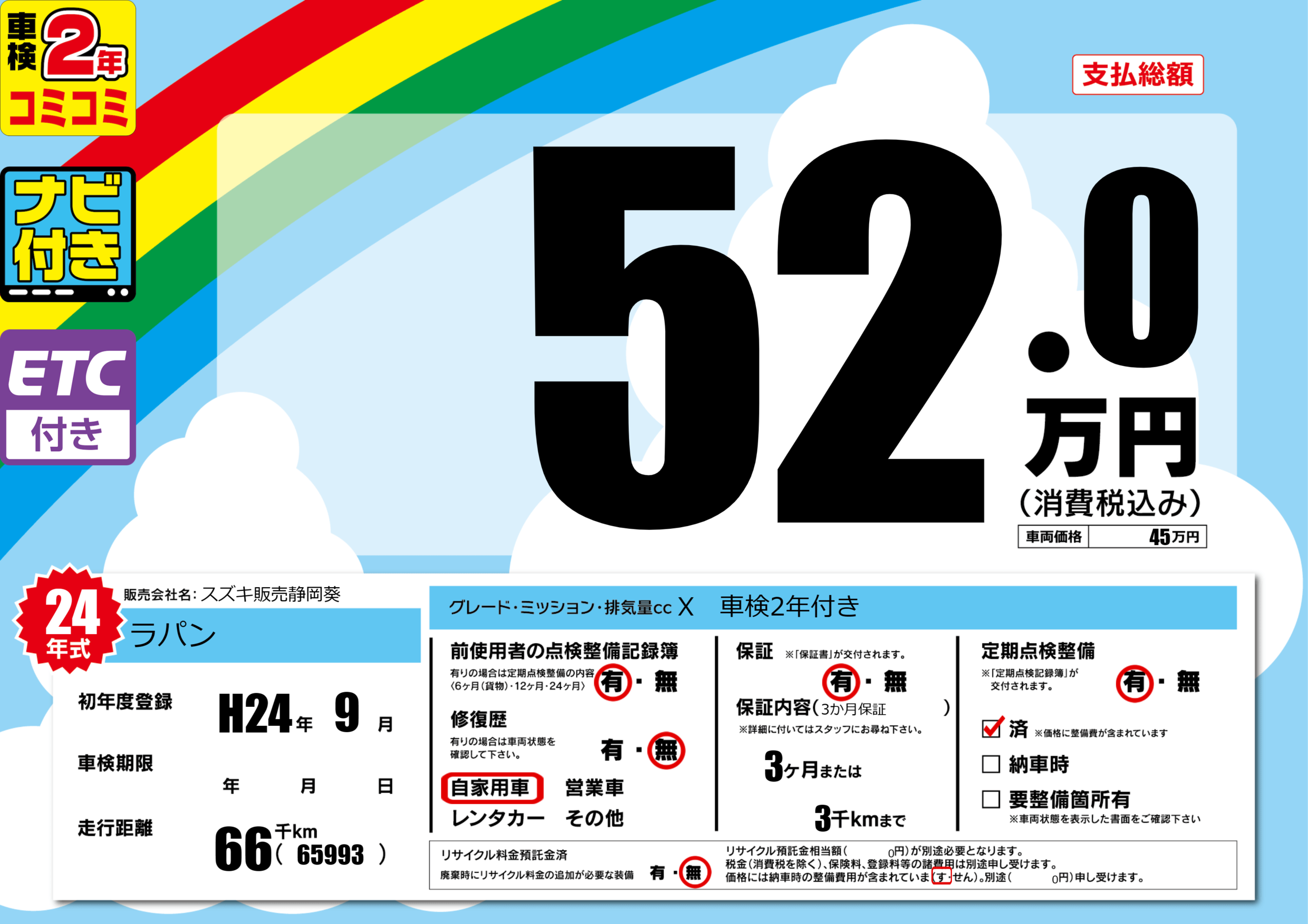 | 定期点検整備 | 定期点検整備あり 定期点検整備済み | ||