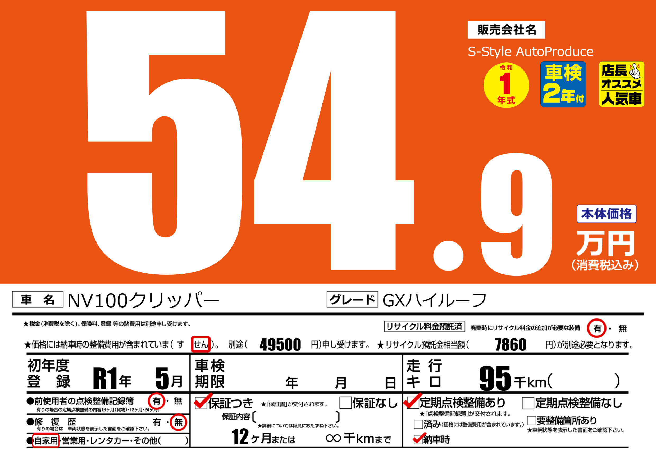 | 車名 | NV100クリッパー | グレード ミッション 排気量 |