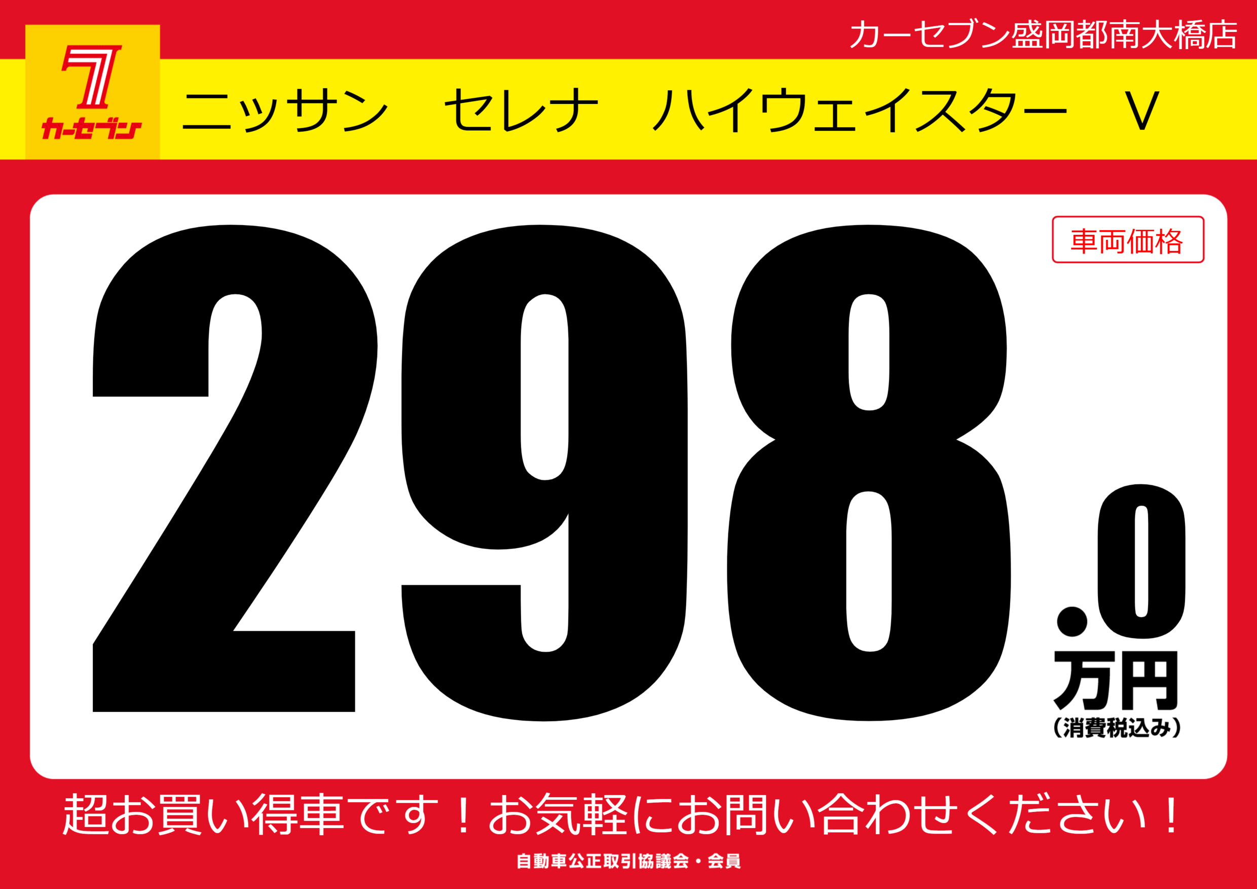 | 車名 | ニッサン セレナ ハイウェイスター V | グレード ミッション 排気量 |