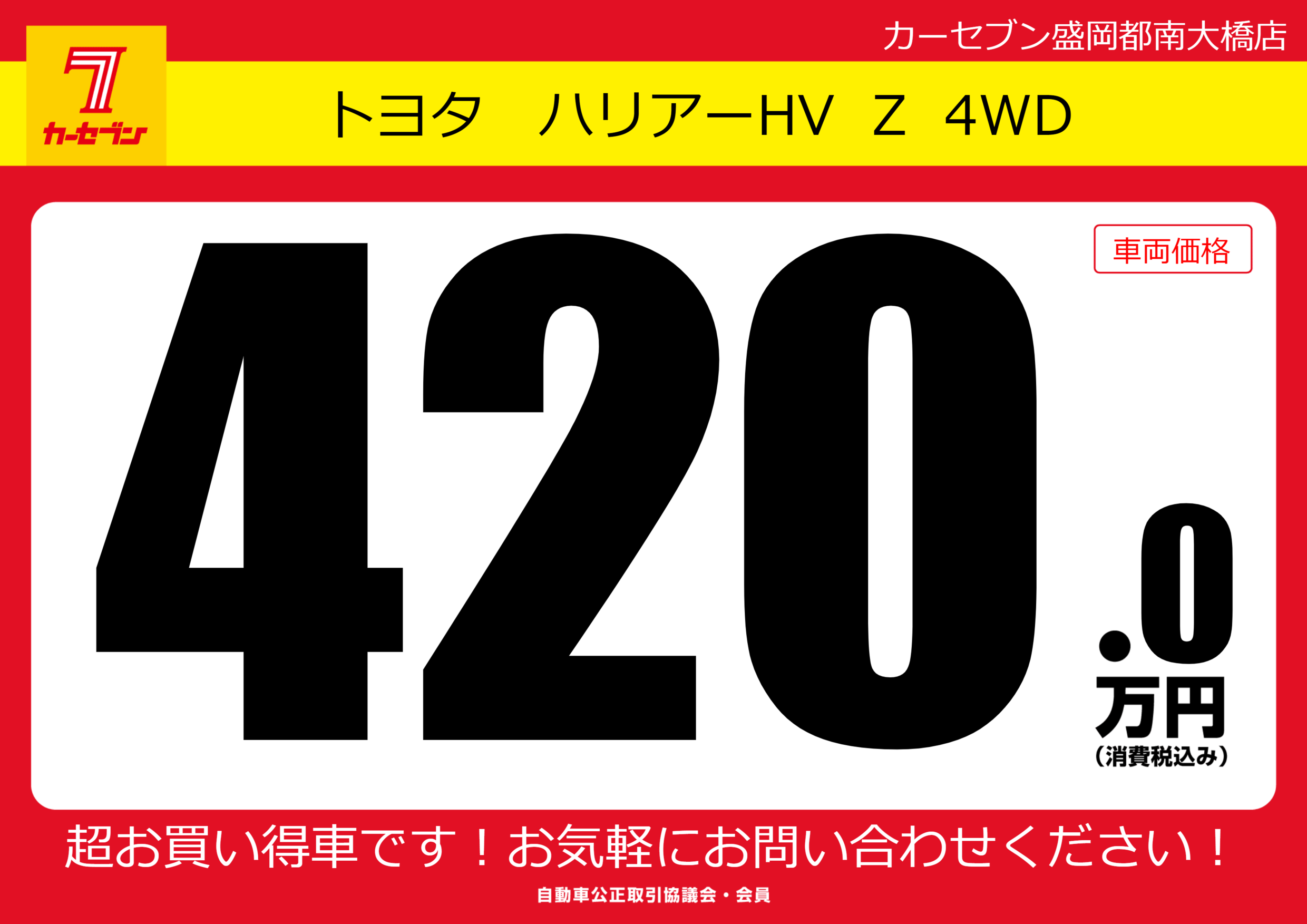 | 車名 | トヨタ ハリアーHV Z 4WD | グレード ミッション 排気量 |