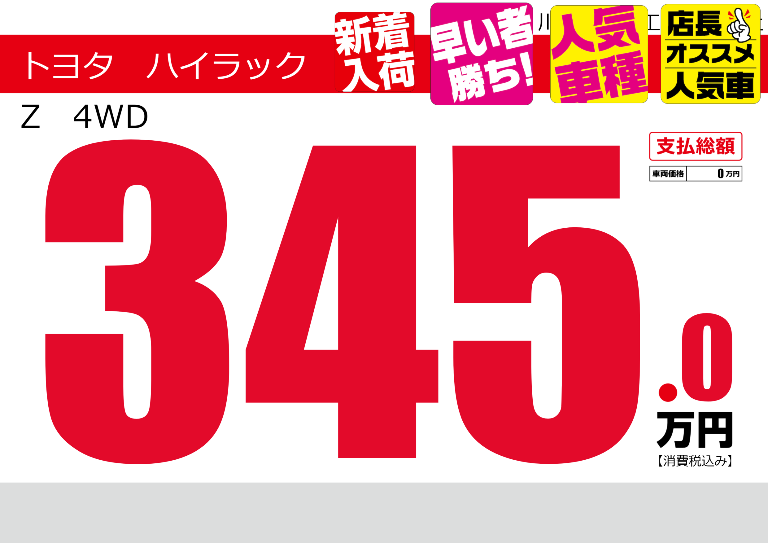 | 車名 | トヨタ ハイラック | グレード ミッション 排気量 |