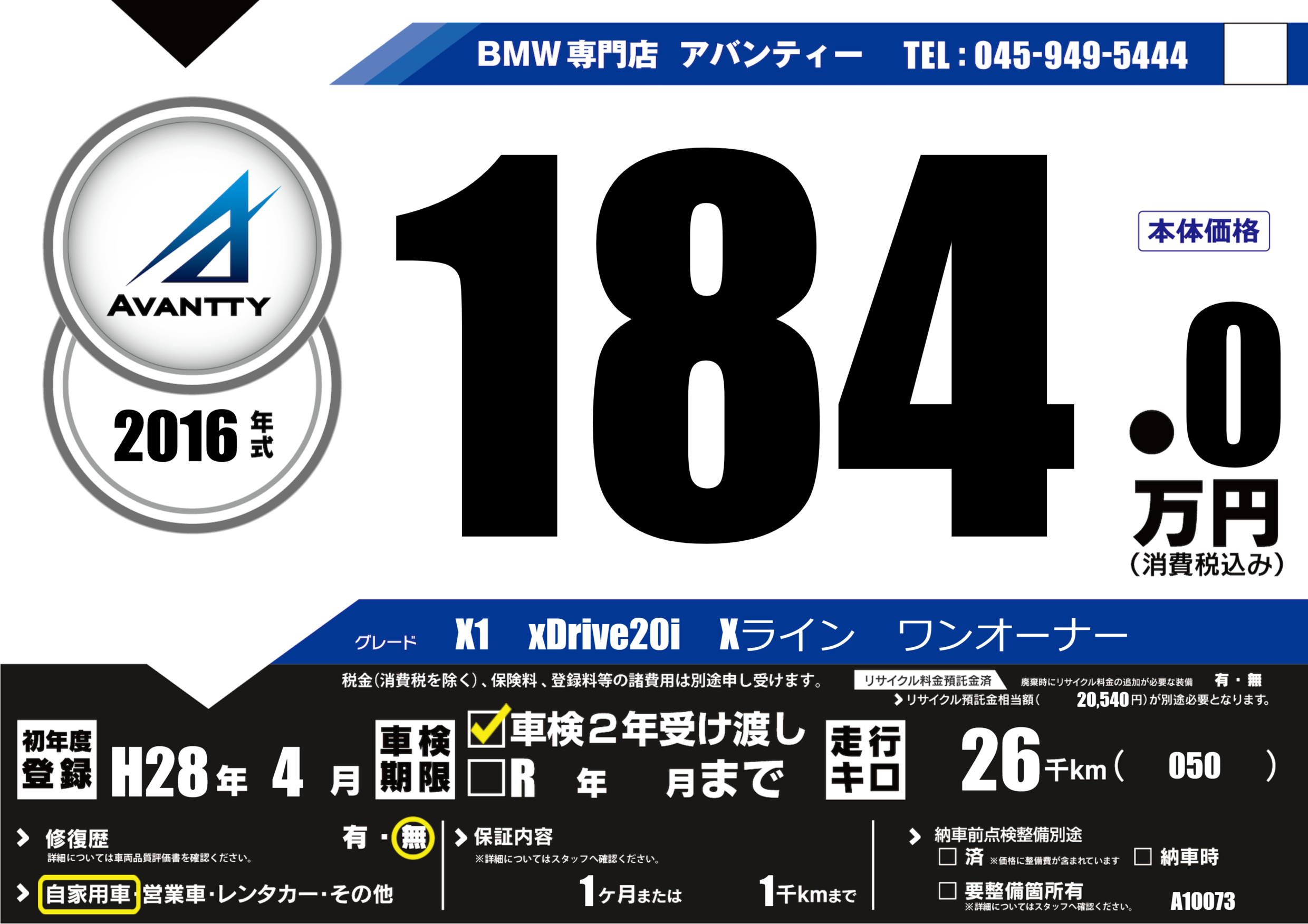 | 走行キロ | 2.6万km | 初年度登録 | H28年4月 |