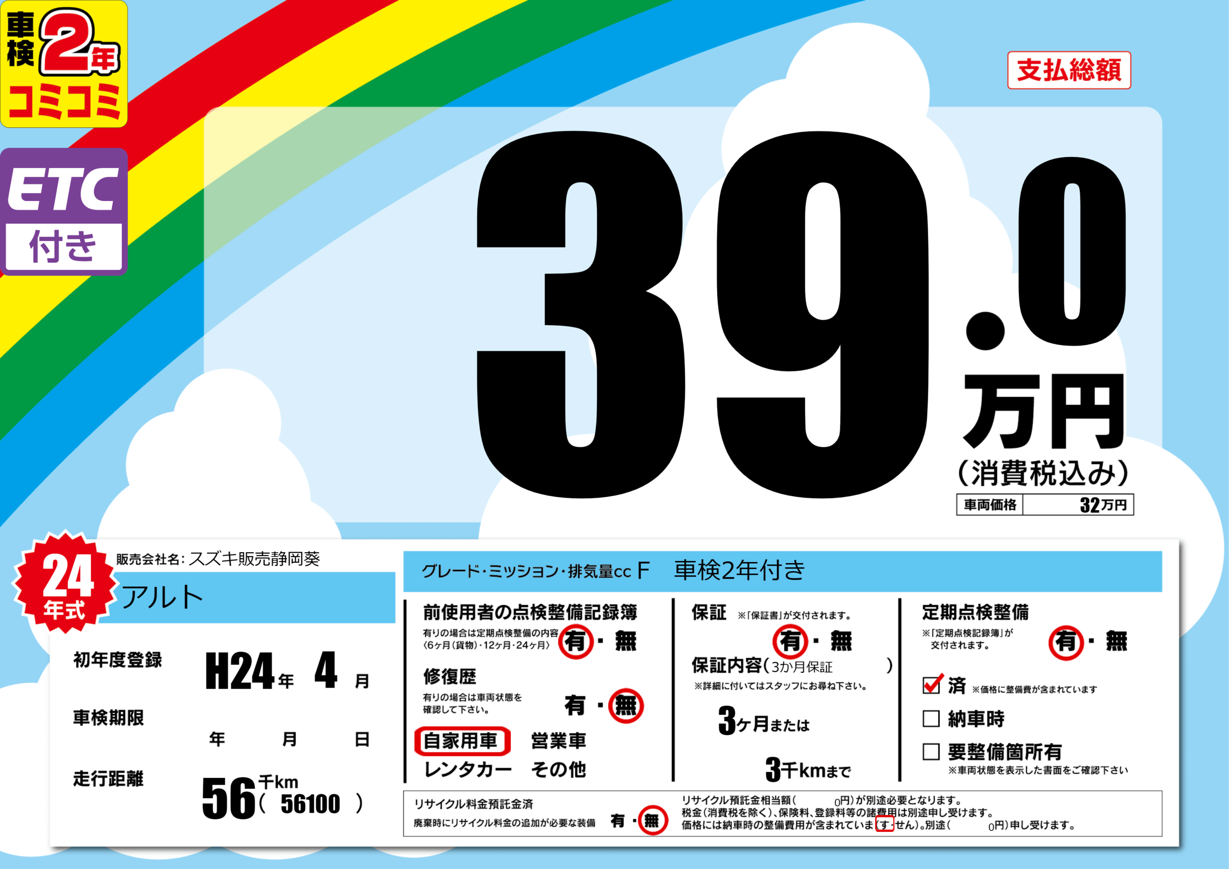 | 定期点検整備 | 定期点検整備あり 定期点検整備済み | ||