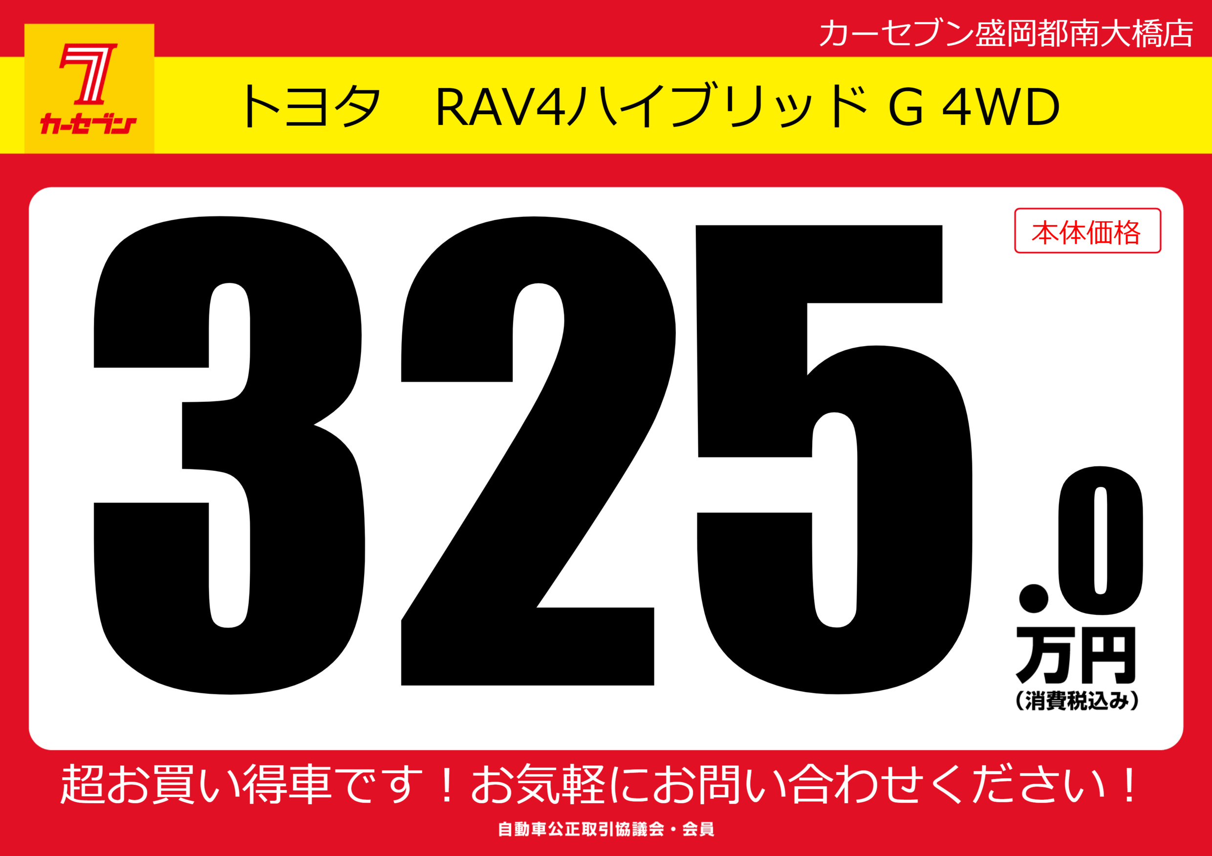 | 車名 | トヨタ RAV4ハイブリッド G 4WD | グレード ミッション 排気量 |