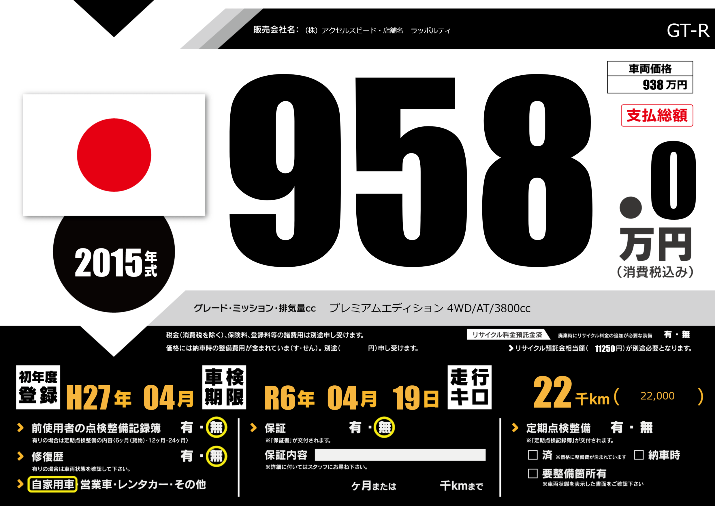 | 車名 | GT-R | グレード ミッション 排気量 |