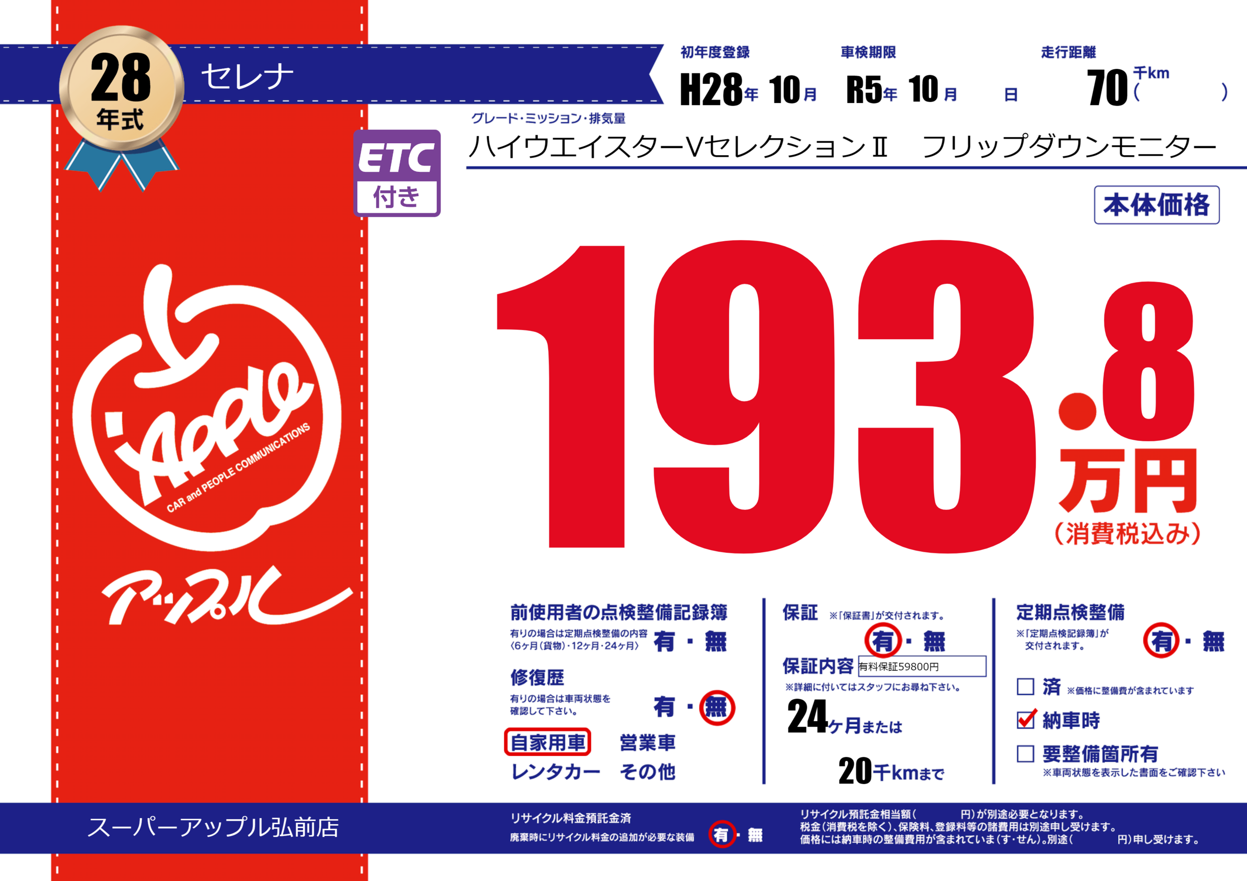 | 定期点検整備 | 定期点検整備あり 納車時あり | ||