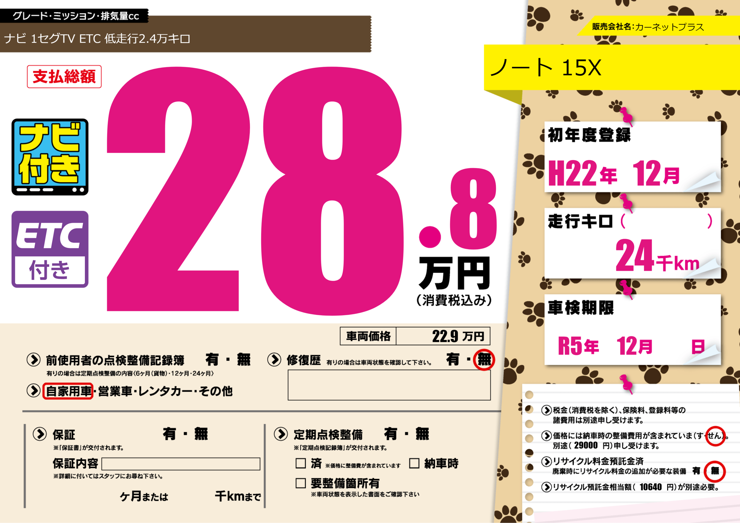 | 車名 | ノート 15X | グレード ミッション 排気量 |