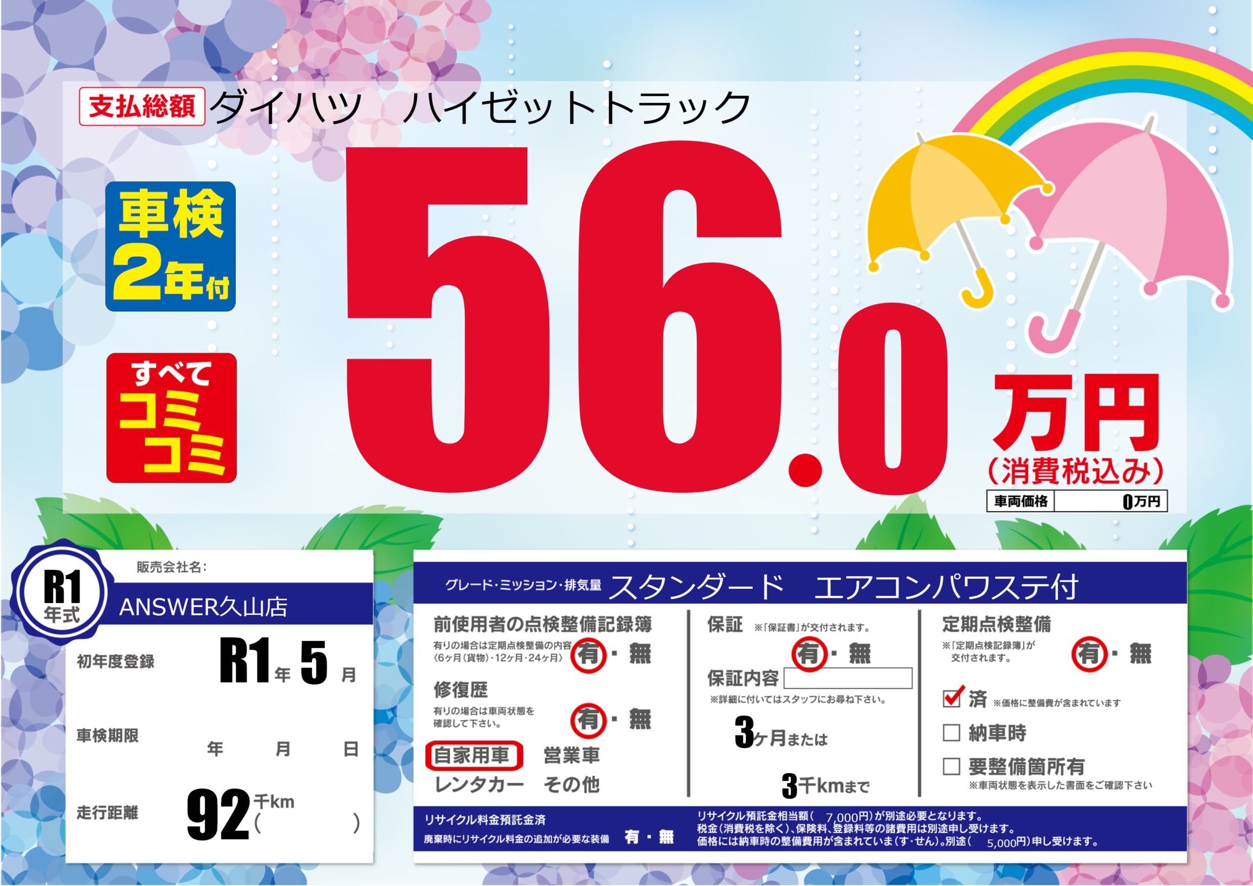 | 定期点検整備 | 定期点検整備あり 定期点検整備済み | ||