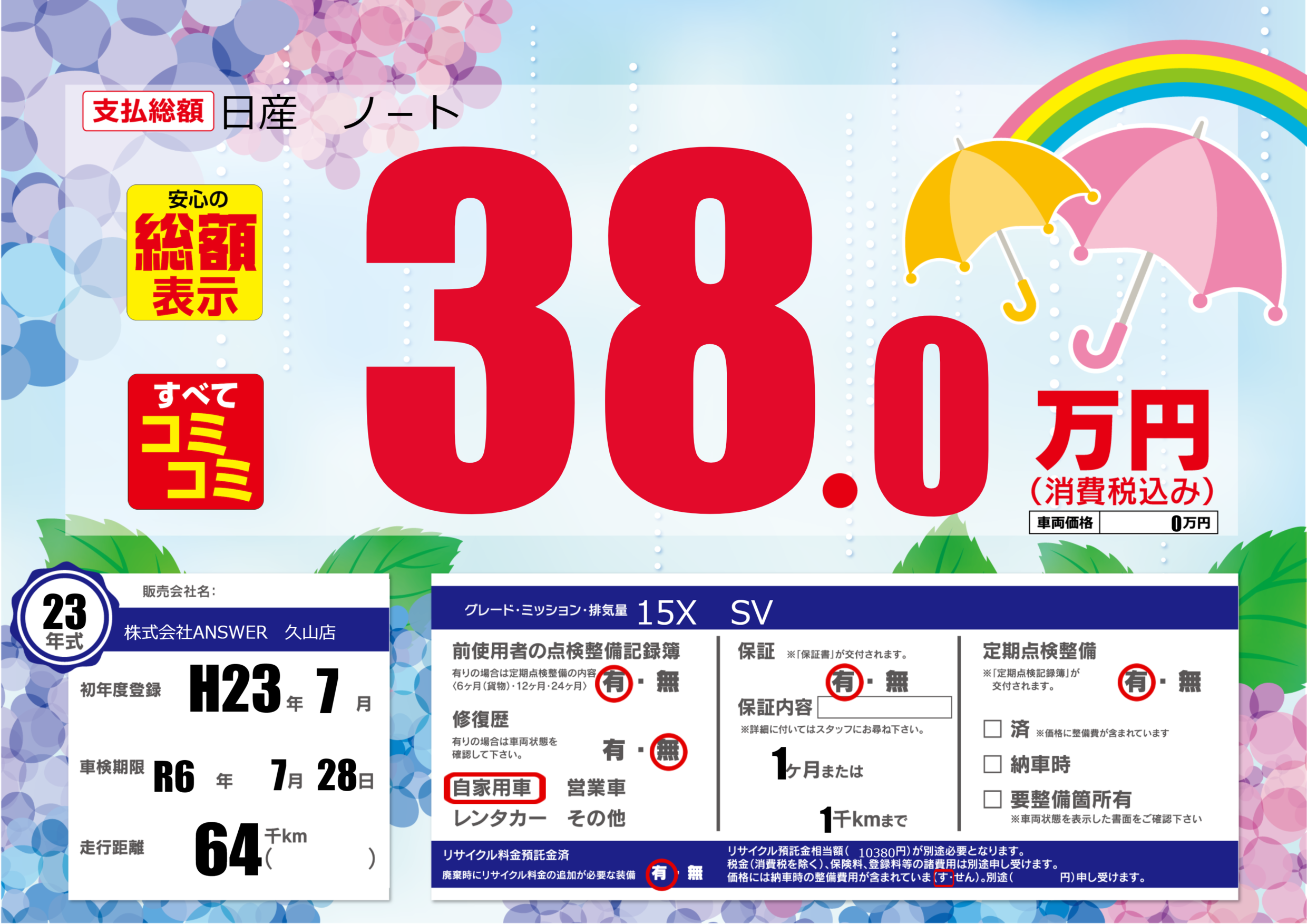あり | 車検制限 | R6年7月28月 |