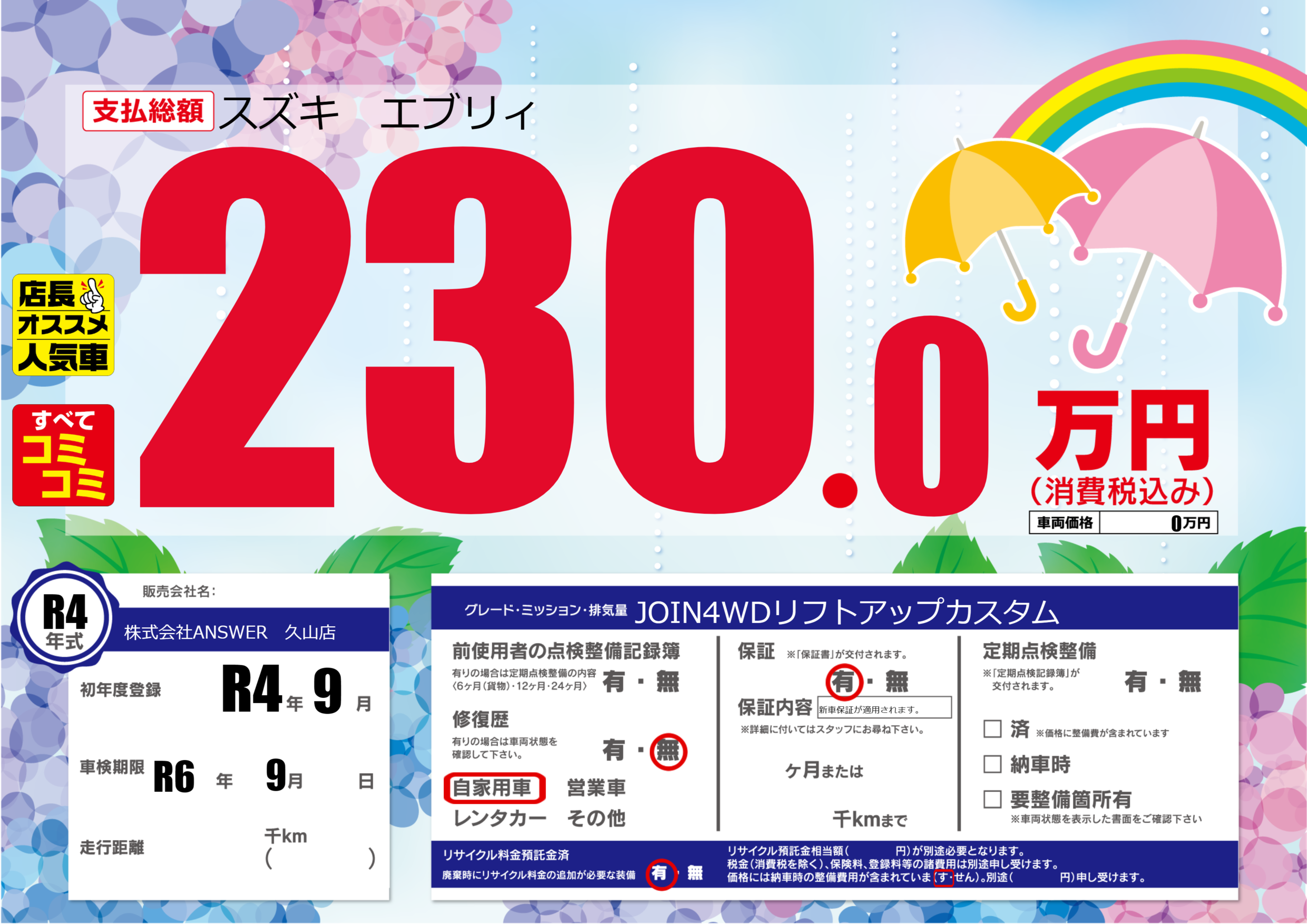 車検制限 R6年 9月 - 日