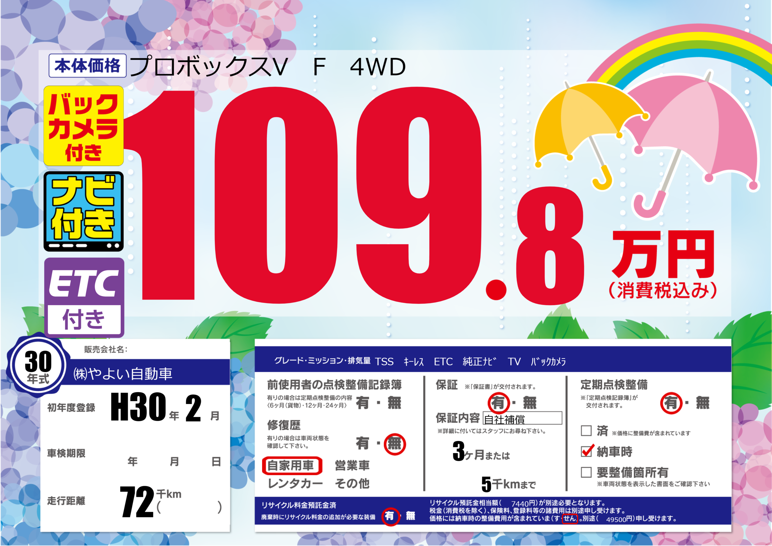 保証付き 保証内容(自社補償) 3ヶ月または(5)千kmまで |